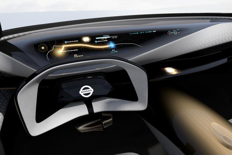 Charakterystyczna dla Nissana deska rozdzielcza typu „szybujące skrzydło” jest dominującym elementem przedniej części kabiny, z wychodzącą spod niej konsolą środkową, która biegnie między przednimi fotelami do tyłu. Każdy z wyprofilowanych foteli został wykończony dwukolorową tkaniną 3D, wycinaną laserowo w geometryczne wzory inspirowane kunsztem stolarskim kumiko.