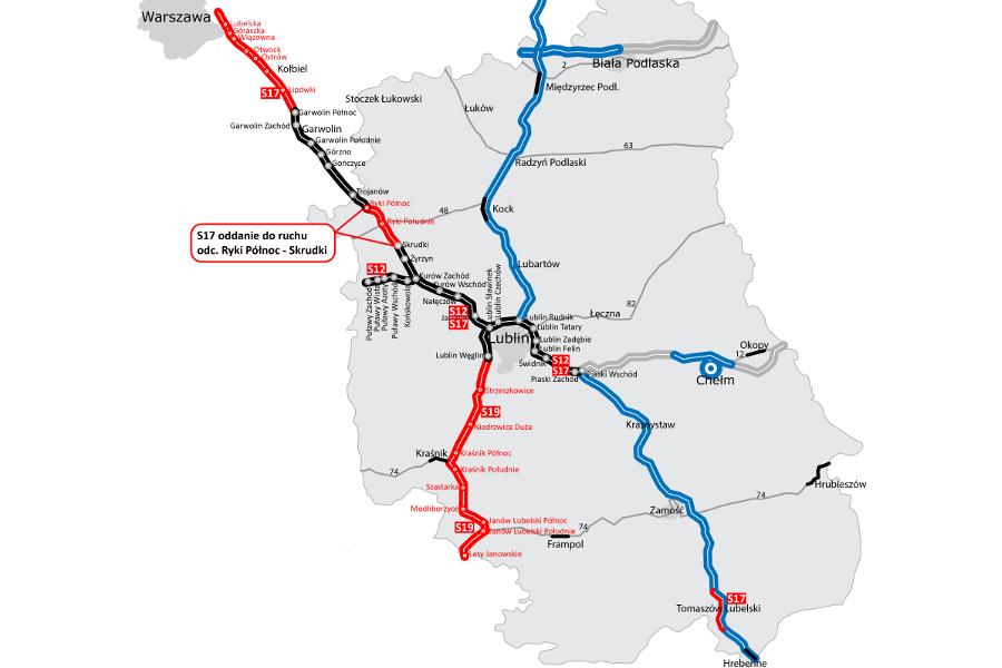 Przed wakacjami kierowcy skorzystali z 13-kilometrowego odcinka pomiędzy węzłami Skrudki i Kurów Zachód. 4 lipca oddano do ruchu kolejne 30 km, czyli dwa odcinki od końca obwodnicy Garwolina do Gończyc i dalej do granicy województw mazowieckiego i lubelskiego (o łącznej długości 25,2 km) wraz z 5-kilometrowym fragmentem kolejnego odcinka do węzła Ryki Północ, gdzie kierowcy zjeżdżali na stary przebieg DK17. Teraz, oddając do ruchu brakujące 15 km pomiędzy węzłami Ryki Północ i Skrudki wszystkie odcinki zostały połączone w całość.