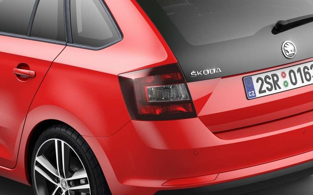 Skoda Rapid Spaceback charakteryzuje się rozstawem osi na poziomie 2602 mm, co przełożyło się na dość sporą przestrzeń we wnętrzu. Producent zwraca również uwagę na ciekawe dodatki (zapewne w najwyższych wersjach wyposażenia), takie jak panoramiczny dach, przyciemniane szyby, czarny spojler dachowy czy przedłużoną tylną szybę, która nachodzi na klapę. Na zdjęciach widać dwie wersje tylnej szyby - czerwony model z opcjonalną klapą, biały zaś ze standardową.