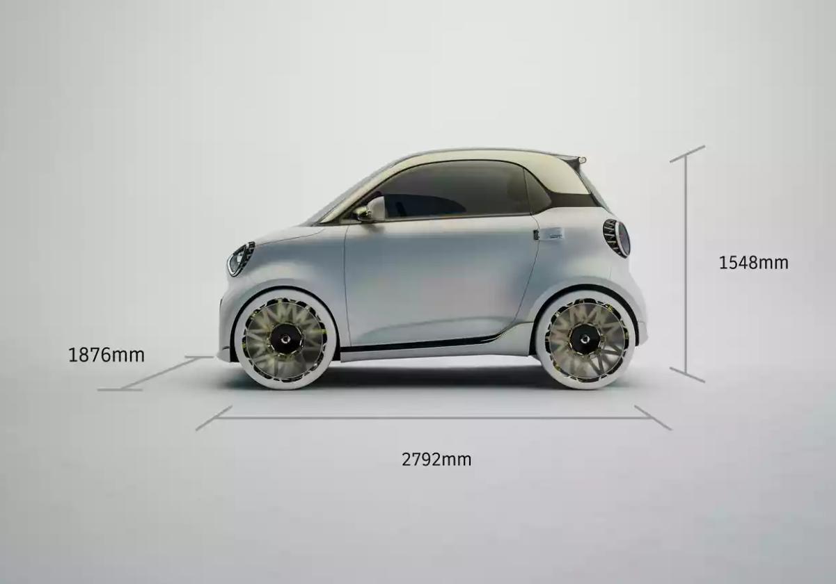 Design #2 to połączenie nostalgii i współczesnych trendów. Sylwetka wyraźnie nawiązuje do pierwszego City-Coupe z 1998 roku oraz ostatniej generacji Fortwo zakończonej w 2024 roku.