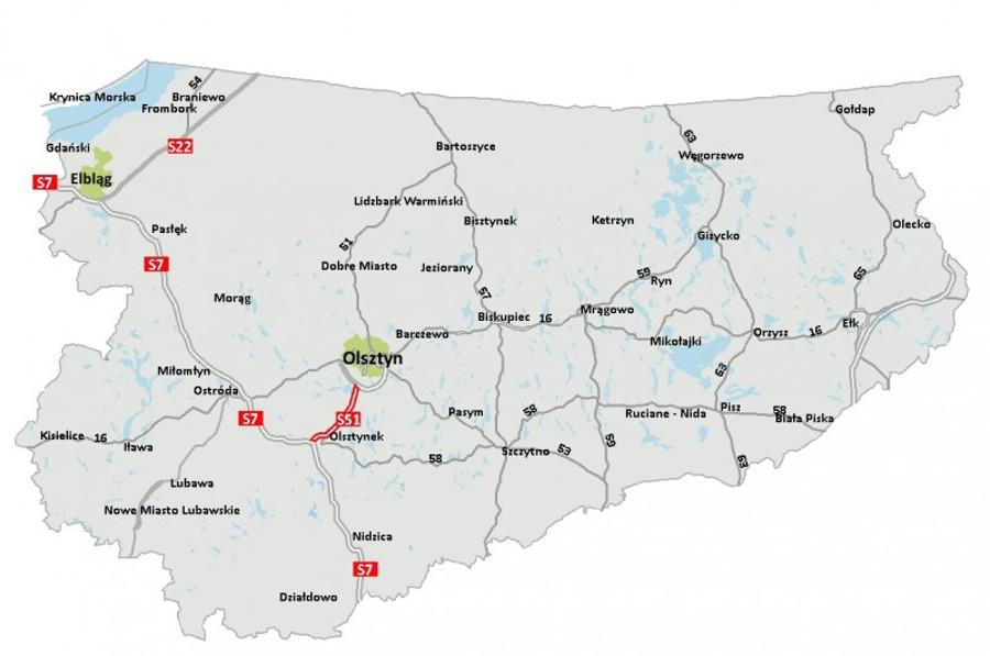 Przed świętami udostępniono również drugą jezdnię drogi ekspresowej S51 Olsztyn - Olsztynek o długości 13,3 km. Tym samym kierowcy będą mogli korzystać z docelowego przekroju drogi, jednak do czasu zakończenia wszystkich prac nie będzie ona miała klasy S.