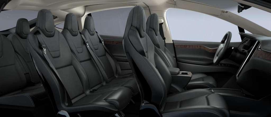 Tesla Model X zgodnie z obietnicą wyposażony został w unoszone do góry drzwi, co jest całkowitą nowością w tym segmencie. Auto oferowane będzie w konfiguracji miejsc 2+2+2 lub 2+3+2, więc doskonale sprawdzi się jako siedmioosobowy rodzinny krążownik.
