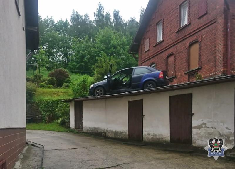 Policjanci z Wałbrzycha po pościgu zatrzymali kierującego samochodem osobowym, który zignorował nadawane w jego kierunku sygnały do zatrzymania się i podjął ucieczkę. 26-letni kierujący ostatecznie zakończył swoją przygodę z jazdą na dachu budynku gospodarczego.