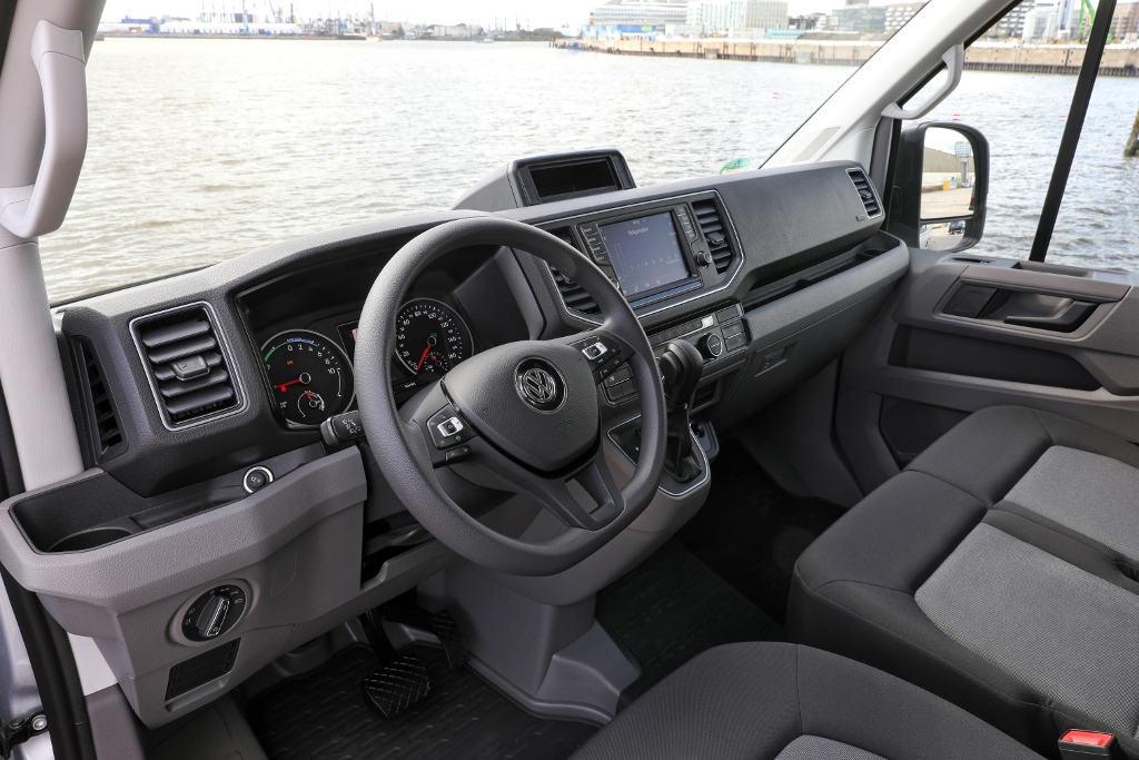 Pierwszy elektryczny pojazd dostawczy Volkswagena posiada szereg systemów z zakresu bezpieczeństwa i komfortu jazdy znanych z innych modeli niemieckiego koncernu. W standardowym wyposażeniu znajdziemy m.in. Park Pilot wspomagający parkowanie i zawierający funkcję ochrony nadwozia, wielofunkcyjną kamerę (z przodu) oraz kamerę z tyłu. Ponadto jako pierwszy samochód użytkowy w swojej klasie Crafter jest wypo. Poza tym w standardzie znajdują się system zapobiegający skutkom podmuchów bocznego wiatru, a także LED-owe reflektory (świateł drogowych, mijania i do jazdy dziennej), automatyczna klimatyzacja (Climatronic), system podgrzewania foteli, pompa ciepła i ogrzewana przednia szyba oraz system nawigacyjny „Discover Media” z „App-Connect”, system obsługi radia przy pomocy komend głosowych, a także interfejs telefonu komórkowego.