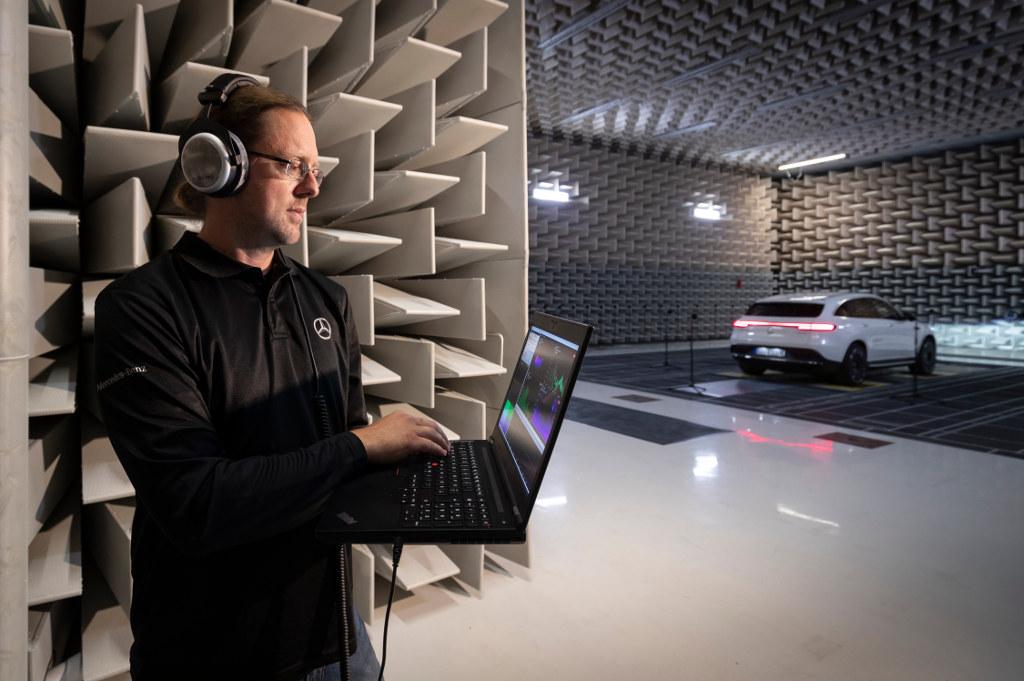 Dlatego też specjaliści od dźwięku z ośrodka badań akustycznych w Mercedes-Benz Technology Center (MTC) w Sindelfingen pracują nad nadaniem optymalnego dźwięku zelektryfikowanym modelom Mercedesa. Przeprowadzane tam testy i pomiary pozwalają skonfigurować generowane dźwięki dla każdego Mercedesa z elektrycznym napędem.