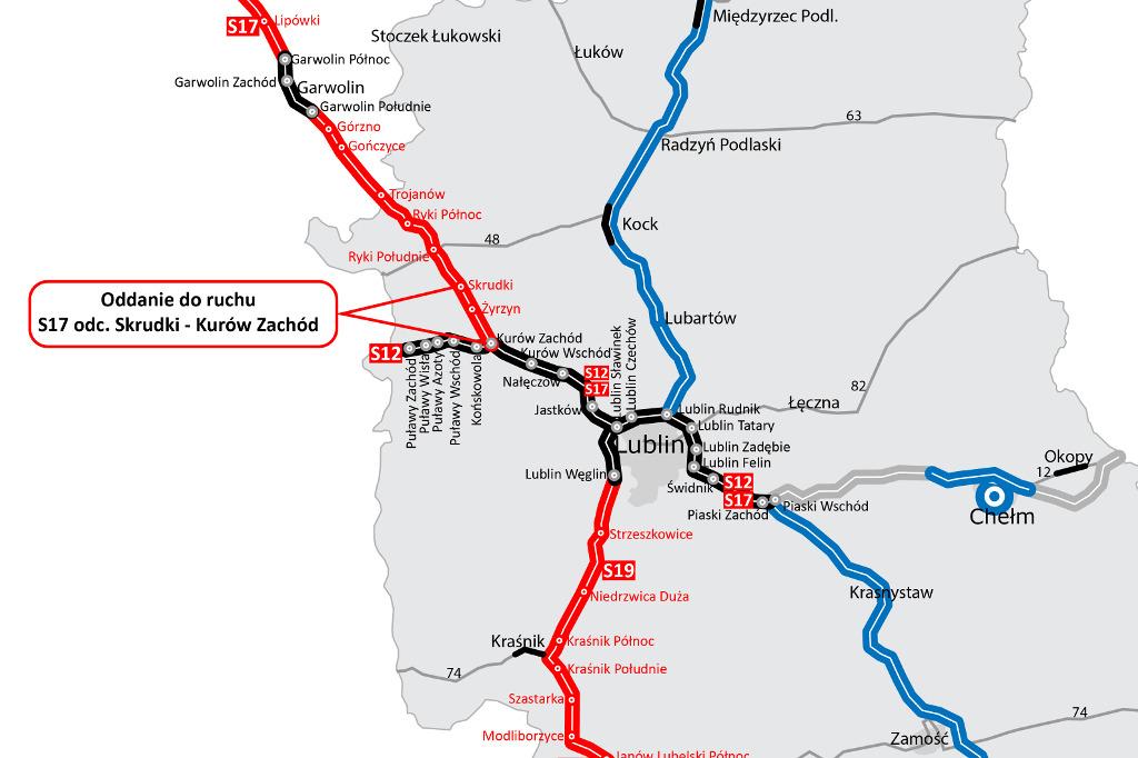 Tuż przed kolejnym długim weekendem oddany do ruchu został ponad 13-kilometrowy odcinek drogi ekspresowej S17 pomiędzy węzłami Skrudki i Kurów Zachód, dzięki któremu podróż z Warszawy do Lublina będzie szybsza o co najmniej kilkanaście minut.