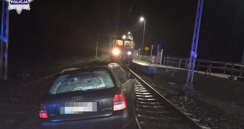 Nie wiemy, jak doszło do tego, że pijany 41-letni kierowca zatrzymał swoje Audi, w którym zasnął, dokładnie na torach kolejowych. W każdym bądź razie może mówić o furze szczęścia, gdyż maszynista zbliżającego się w jego kierunku pociągu w porę go zauważył.