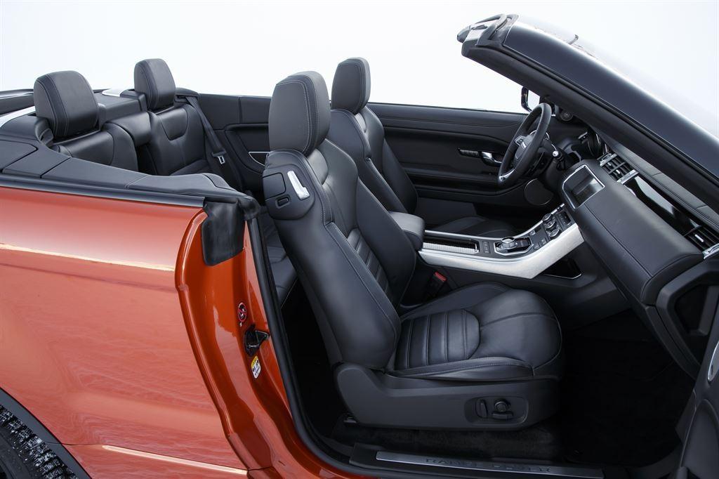 Range Rover Evoque Cabrio będzie jedynym kompaktowym SUV-em z segmentu premium, który będzie miał otwierany dach. Wykonany z materiału składa się automatycznie w 18 sekund, a rozkłada w 21 sekund i to także podczas jazdy z prędkością do 48 km/h. Jak zapewniają Brytyjczycy komfort podróżowania, zwłaszcza ten akustyczny, dzięki dodatkowemu wygłuszeniu jest porównywalny do wersji Evoque'a z zamkniętym dachem.