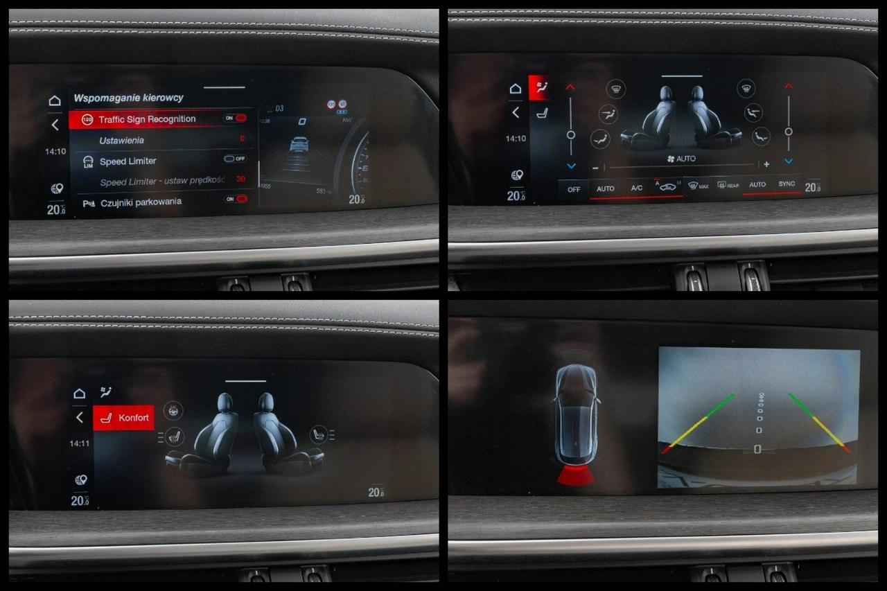 ABS, Alarm, ASR (kontrola trakcji), Czujnik deszczu, Czujniki parkowania tylne, Immobilizer, Asystent pasa ruchu, Czujnik martwego pola, Czujniki parkowania przednie, Kurtyny powietrzne, Poduszki boczne przednie, Poduszka powietrzna kierowcy, Poduszka powietrzna pasażera, Poduszki boczne tylne, Światła xenonowe, ESP (stabilizacja toru jazdy), Isofix, Kamera cofania, Elektryczne szyby przednie, Elektryczne szyby tylne, Elektrycznie ustawiane lusterka, Podgrzewane przednie siedzenia, Przyciemniane szyby, Wielofunkcyjna kierownica, Wspomaganie kierownicy, Elektrycznie ustawiane fotele, Podgrzewane lusterka boczne, Podgrzewane tylne siedzenia, Tapicerka jasna, Tapicerka skórzana, Bluetooth, Gniazdo USB, MP3, Radio fabryczne, Nawigacja GPS, Alufelgi, Bezkluczykowy dostęp, Centralny zamek, Komputer pokładowy, Relingi dachowe, Tempomat, Elektrochromatyczne lusterko wsteczne, Ogranicznik prędkości, System Start-Stop, Łopatki zmiany biegów, Tempomat aktywny