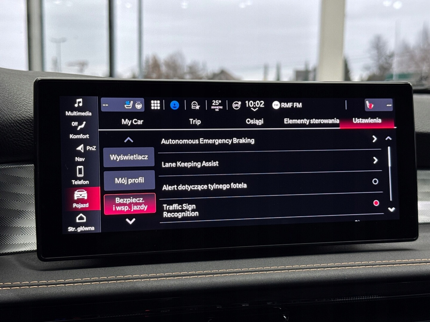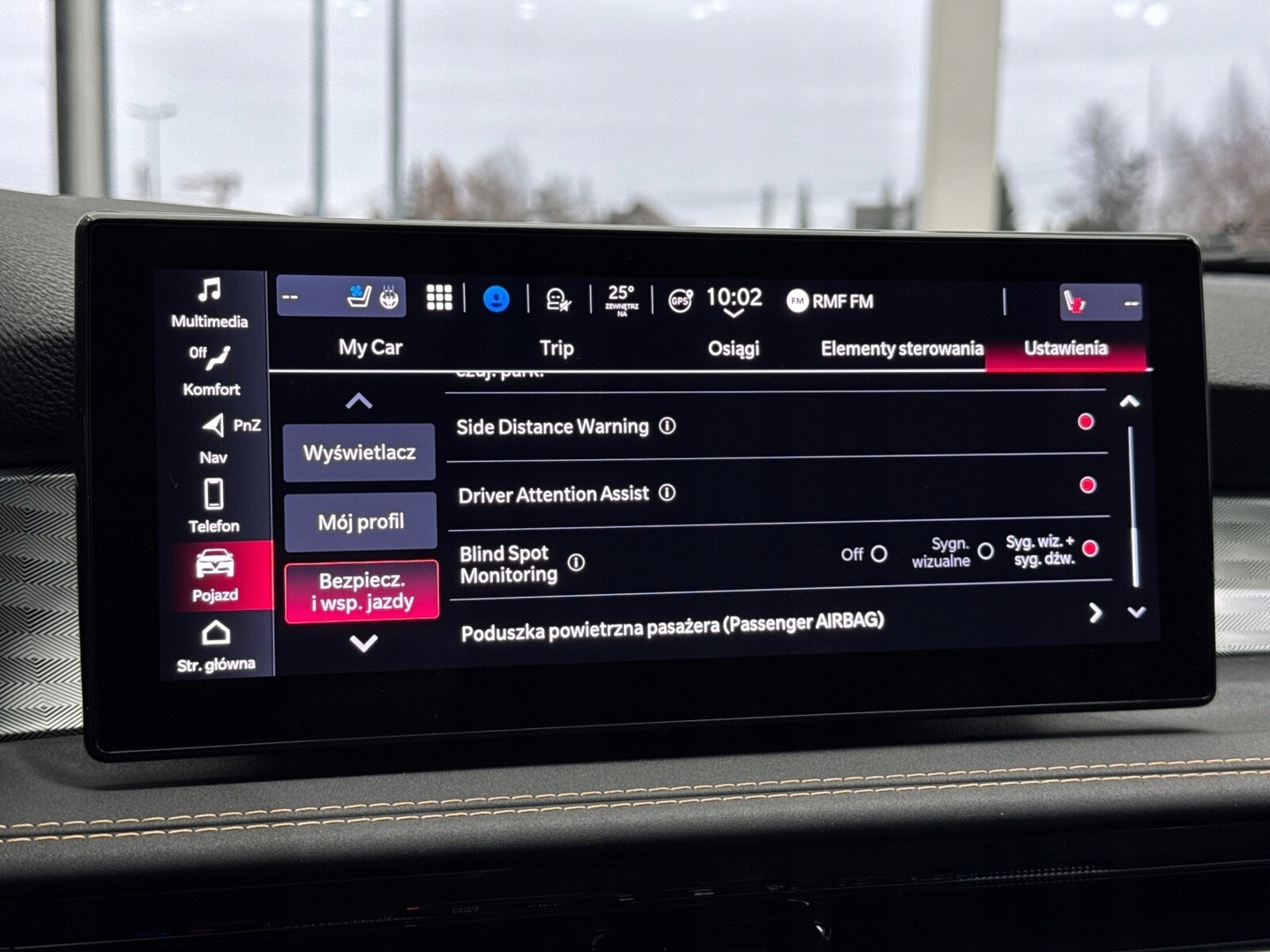 Czujnik martwego pola, Czujnik zmierzchu, Kamera cofania, Czujniki parkowania przednie, Czujniki parkowania tylne, ABS, Poduszki boczne przednie, ESP (stabilizacja toru jazdy), Isofix, Poduszka powietrzna kierowcy, Poduszka powietrzna pasażera, Elektryczne szyby przednie, Elektryczne szyby tylne, Elektrycznie ustawiane fotele, Podgrzewane przednie siedzenia, Przyciemniane szyby, Tapicerka skórzana, Elektrycznie ustawiane lusterka, Wspomaganie kierownicy, Bluetooth, Gniazdo USB, Radio niefabryczne, Nawigacja GPS, Łopatki zmiany biegów, Ogranicznik prędkości, System Start-Stop, Tempomat aktywny, Alufelgi
