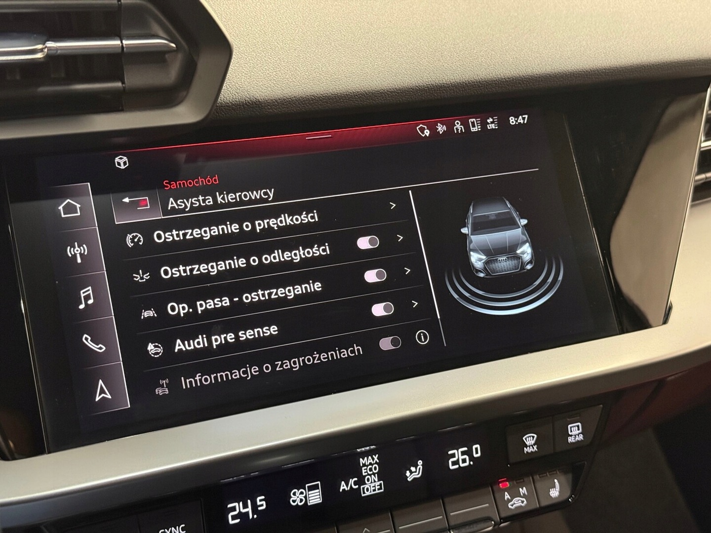 ABS, Asystent pasa ruchu, Czujnik deszczu, Czujnik zmierzchu, ESP (stabilizacja toru jazdy), Kamera cofania, Asystent parkowania, Elektryczne szyby przednie, Elektryczne szyby tylne, Podgrzewane lusterka boczne, Przyciemniane szyby, Gniazdo USB, Radio niefabryczne, Nawigacja GPS, Alufelgi, Ogranicznik prędkości, System Start-Stop, Tempomat, Tempomat aktywny