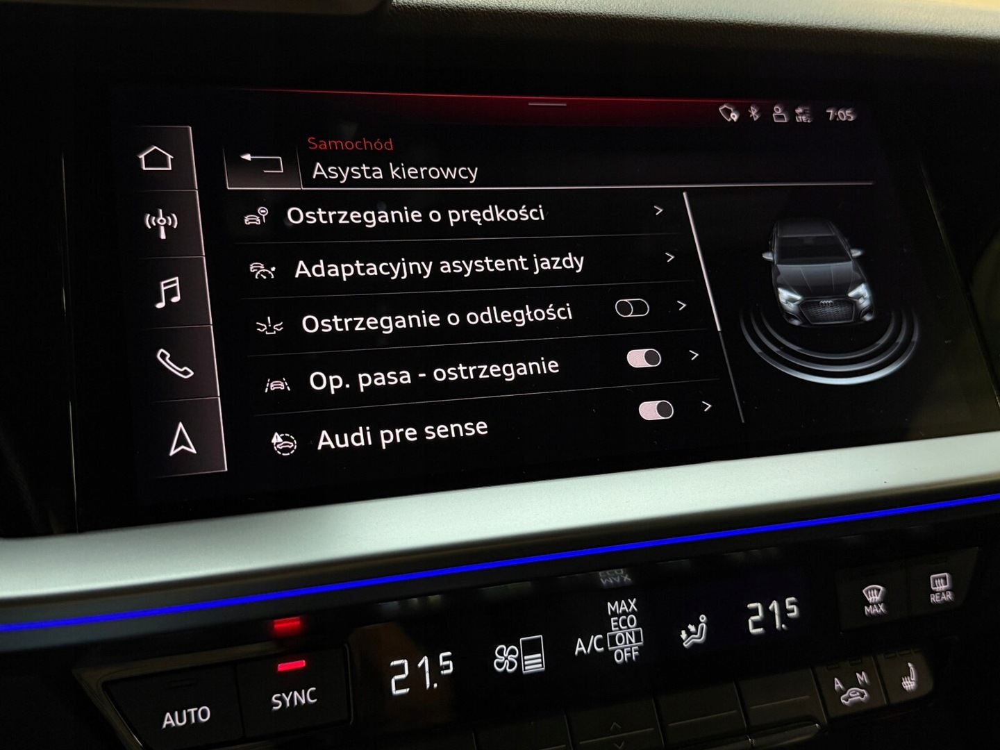 ABS, Poduszki boczne przednie, Poduszki boczne tylne, Czujnik deszczu, Czujnik zmierzchu, ESP (stabilizacja toru jazdy), Isofix, Kamera cofania, Czujniki parkowania przednie, Czujniki parkowania tylne, Poduszka powietrzna kierowcy, Poduszka powietrzna pasażera, Elektryczne szyby przednie, Elektryczne szyby tylne, Elektrycznie ustawiane lusterka, Podgrzewane lusterka boczne, Podgrzewane przednie siedzenia, Wspomaganie kierownicy, Bluetooth, Gniazdo USB, Radio niefabryczne, Nawigacja GPS, Alufelgi, Ogranicznik prędkości, System Start-Stop, Tempomat aktywny, Łopatki zmiany biegów