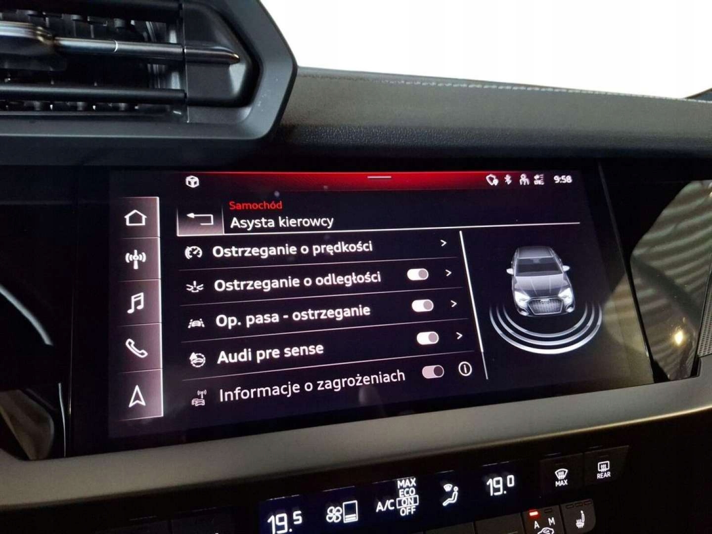 ABS, ASR (kontrola trakcji), Czujnik deszczu, Czujniki parkowania przednie, Czujniki parkowania tylne, Czujnik zmierzchu, ESP (stabilizacja toru jazdy), Isofix, Kurtyny powietrzne, Poduszka powietrzna kierowcy, Poduszka powietrzna pasażera, Poduszki boczne przednie, Poduszki boczne tylne, Elektryczne szyby przednie, Elektryczne szyby tylne, Elektrycznie ustawiane lusterka, Podgrzewane lusterka boczne, Podgrzewane przednie siedzenia, Podgrzewane tylne siedzenia, Przyciemniane szyby, Tapicerka skórzana, Wielofunkcyjna kierownica, Skórzana kierownica, Bluetooth, Gniazdo USB, Radio fabryczne, Alufelgi, Bezkluczykowy dostęp, Elektrochromatyczne lusterka boczne, Łopatki zmiany biegów, System Start-Stop, Tempomat