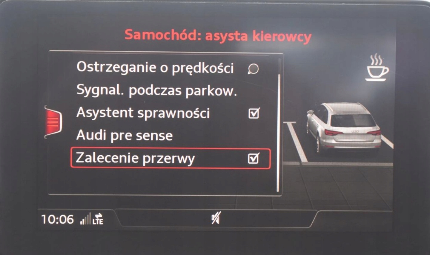 ABS, Alarm, ASR (kontrola trakcji), Asystent parkowania, Czujnik deszczu, Czujnik zmierzchu, ESP (stabilizacja toru jazdy), Isofix, Kurtyny powietrzne, Poduszka powietrzna chroniąca kolana, Poduszka powietrzna kierowcy, Poduszka powietrzna pasażera, Poduszki boczne przednie, Poduszki boczne tylne, Elektryczne szyby przednie, Elektryczne szyby tylne, Elektrycznie ustawiane lusterka, Podgrzewana przednia szyba, Podgrzewane lusterka boczne, Tapicerka tekstylna, Wielofunkcyjna kierownica, Wspomaganie kierownicy, Zawieszenie adaptacyjne, Skórzana kierownica, Bluetooth, Gniazdo USB, Nawigacja GPS, Radio fabryczne, Alufelgi, Ogranicznik prędkości, System Start-Stop