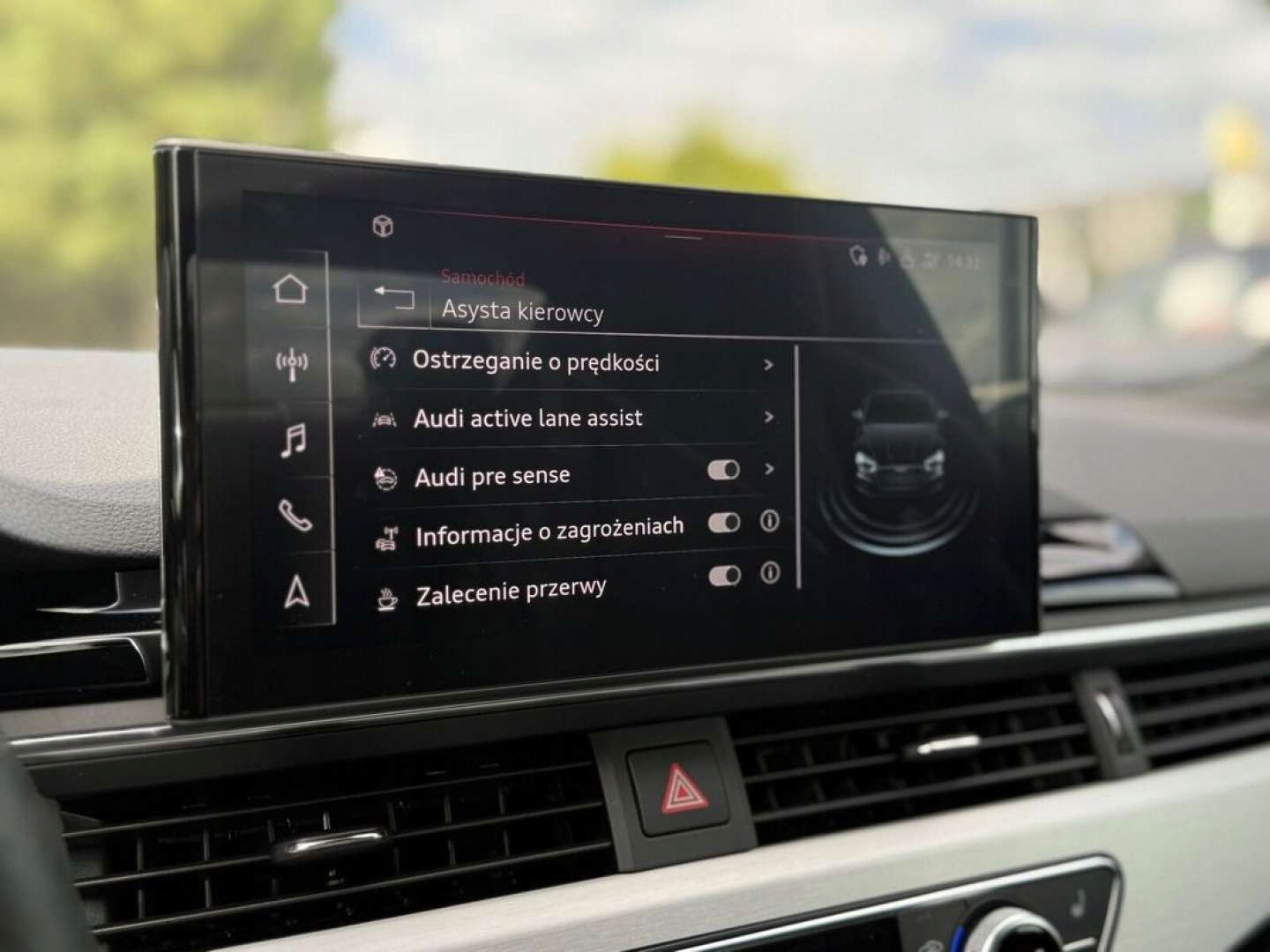 ABS, Asystent pasa ruchu, Czujnik deszczu, Czujniki parkowania tylne, ESP (stabilizacja toru jazdy), Isofix, Kamera cofania, Poduszka powietrzna kierowcy, Poduszka powietrzna pasażera, Poduszki boczne przednie, Poduszki boczne tylne, Elektryczne szyby przednie, Elektrycznie ustawiane fotele, Elektrycznie ustawiane lusterka, Podgrzewane lusterka boczne, Podgrzewane przednie siedzenia, Podgrzewane tylne siedzenia, Przyciemniane szyby, Wielofunkcyjna kierownica, Wspomaganie kierownicy, Skórzana kierownica, Bluetooth, Gniazdo USB, Nawigacja GPS, Radio fabryczne, Alufelgi, Elektrochromatyczne lusterka boczne, Łopatki zmiany biegów, Ogranicznik prędkości, Tempomat