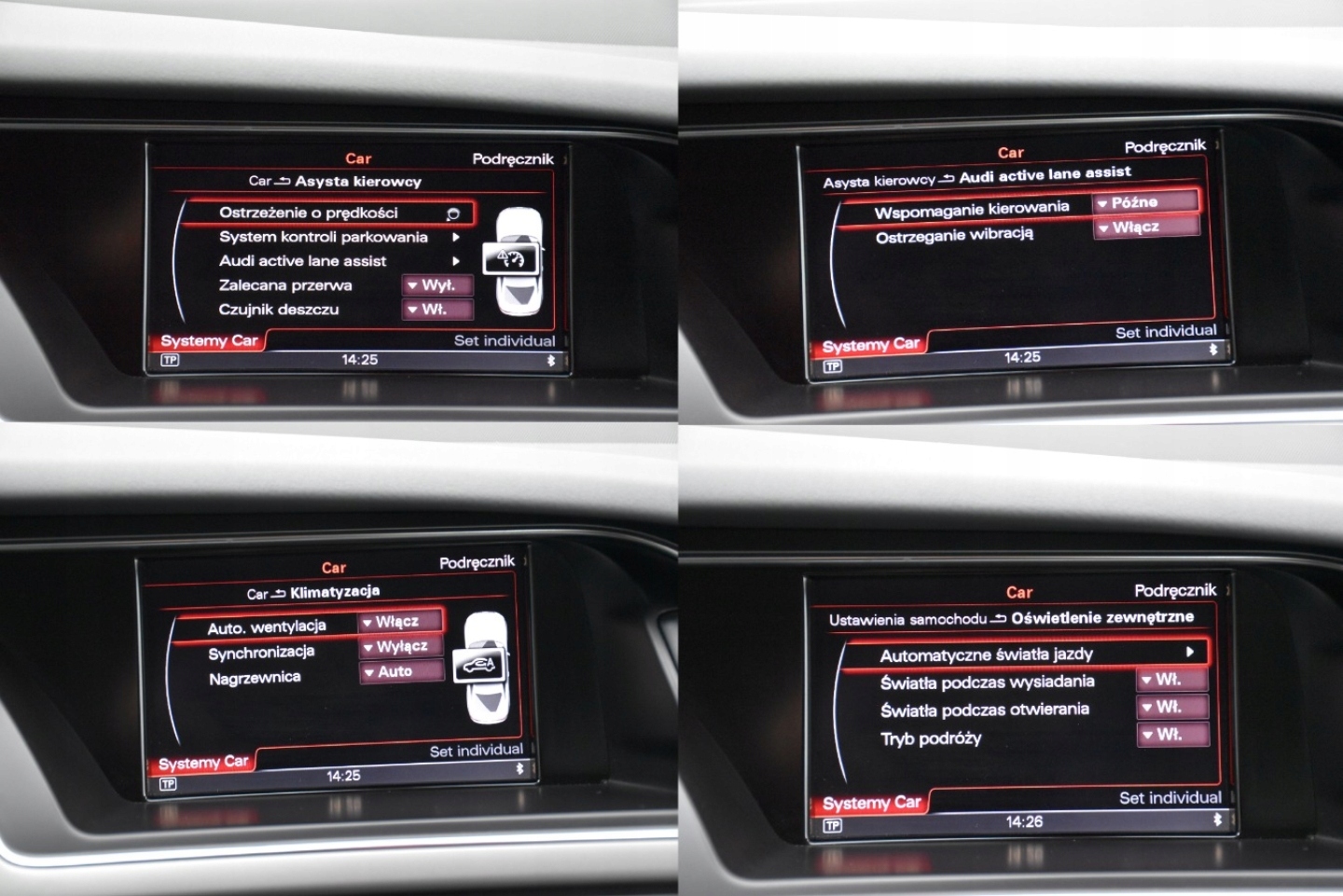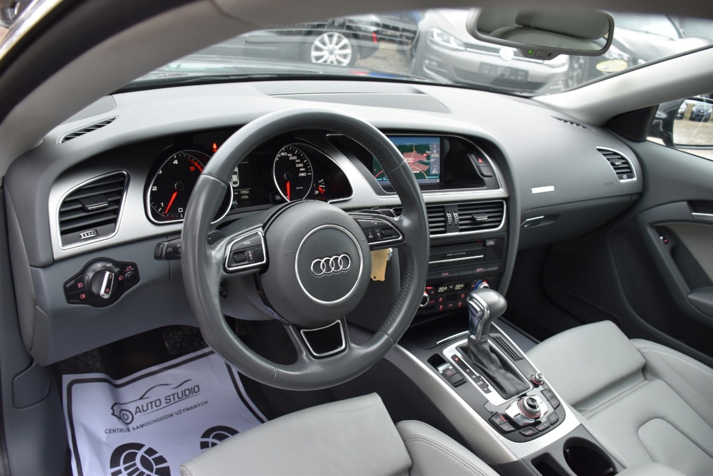 ABS, ASR (kontrola trakcji), Czujnik deszczu, Czujniki parkowania przednie, Czujniki parkowania tylne, Czujnik zmierzchu, ESP (stabilizacja toru jazdy), Immobilizer, Isofix, Kurtyny powietrzne, Poduszka powietrzna kierowcy, Poduszka powietrzna pasażera, Poduszki boczne przednie, Światła xenonowe, Elektryczne szyby przednie, Elektrycznie ustawiane fotele, Elektrycznie ustawiane lusterka, Podgrzewana tylna szyba, Podgrzewane lusterka boczne, Przyciemniane szyby, Skórzana kierownica, Tapicerka jasna, Tapicerka skórzana, Wielofunkcyjna kierownica, Wspomaganie kierownicy, Zawieszenie adaptacyjne, Bluetooth, Gniazdo AUX, Nawigacja GPS, Radio fabryczne, Alufelgi, Bezkluczykowy dostęp, Centralny zamek, Elektrochromatyczne lusterka boczne, Komputer pokładowy, Łopatki zmiany biegów, Tempomat