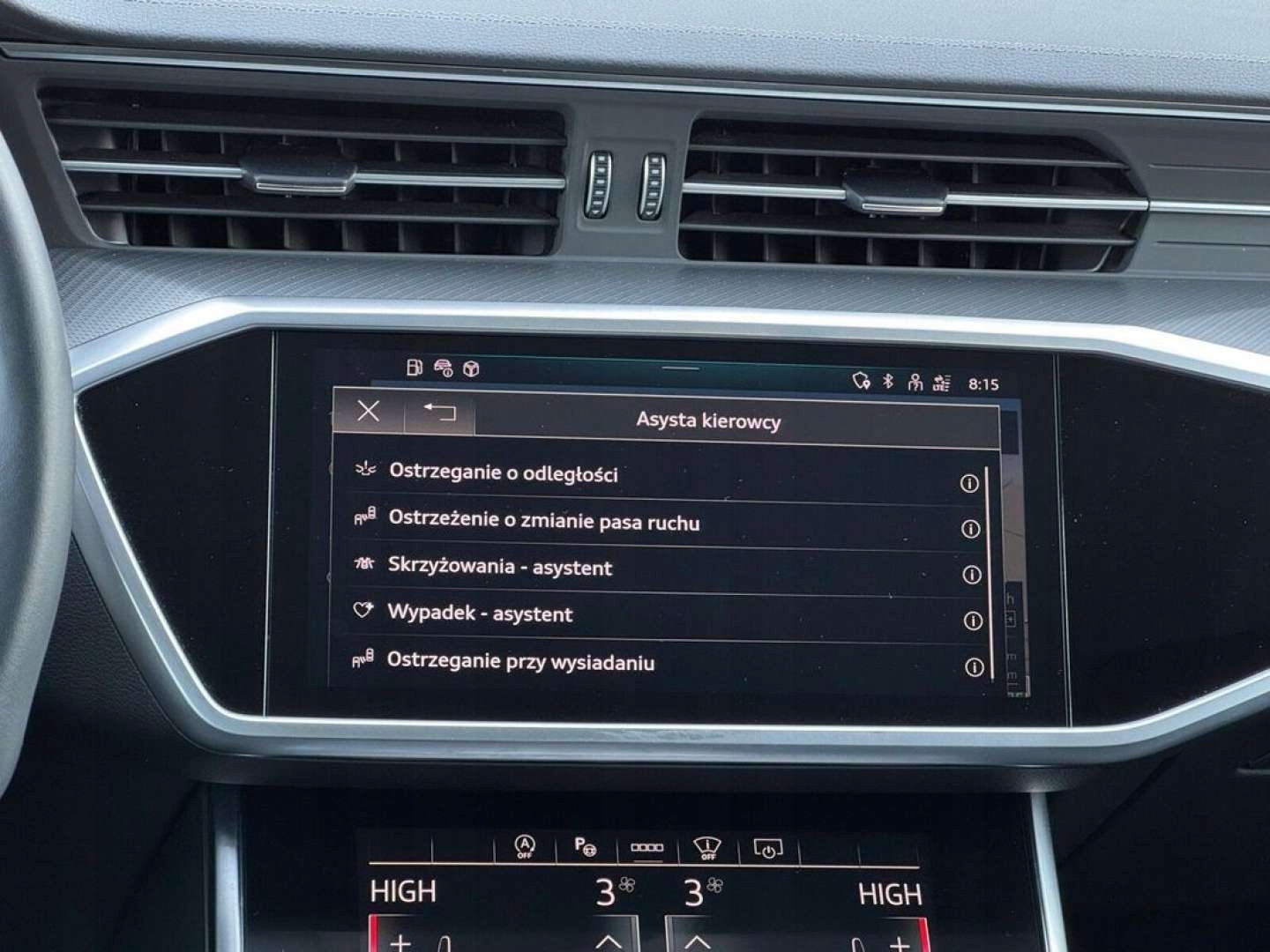 ABS, ASR (kontrola trakcji), Czujnik deszczu, Czujniki parkowania przednie, Czujniki parkowania tylne, Czujnik zmierzchu, ESP (stabilizacja toru jazdy), Isofix, Kamera cofania, Kurtyny powietrzne, Poduszka powietrzna kierowcy, Poduszka powietrzna pasażera, Elektryczne szyby przednie, Elektryczne szyby tylne, Elektrycznie ustawiane fotele, Elektrycznie ustawiane lusterka, Podgrzewane lusterka boczne, Podgrzewane przednie siedzenia, Podgrzewane tylne siedzenia, Tapicerka skórzana, Wielofunkcyjna kierownica, Wspomaganie kierownicy, Zawieszenie adaptacyjne, Skórzana kierownica, Bluetooth, Gniazdo USB, Nawigacja GPS, Radio fabryczne, Alufelgi, Bezkluczykowy dostęp, Elektrochromatyczne lusterka boczne, Ogranicznik prędkości, System Start-Stop, Tempomat aktywny