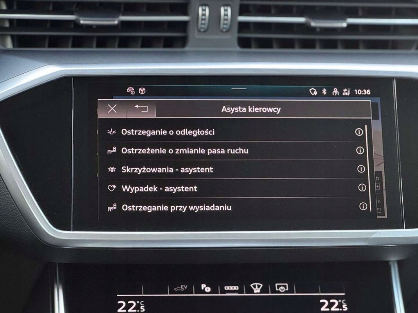 ABS, ASR (kontrola trakcji), Czujnik deszczu, Czujniki parkowania przednie, Czujniki parkowania tylne, Czujnik martwego pola, Czujnik zmierzchu, ESP (stabilizacja toru jazdy), HUD (wyświetlacz przezierny), Isofix, Kurtyny powietrzne, Poduszka powietrzna kierowcy, Poduszka powietrzna pasażera, Poduszki boczne przednie, Elektryczne szyby przednie, Elektryczne szyby tylne, Elektrycznie ustawiane fotele, Elektrycznie ustawiane lusterka, Ogrzewanie postojowe, Podgrzewane lusterka boczne, Podgrzewane przednie siedzenia, Podgrzewane tylne siedzenia, Przyciemniane szyby, Tapicerka skórzana, Wentylowane fotele, Wielofunkcyjna kierownica, Wspomaganie kierownicy, Skórzana kierownica, Bluetooth, Gniazdo USB, Nawigacja GPS, Radio fabryczne, Alufelgi, Elektrochromatyczne lusterka boczne, Szyberdach, Tempomat aktywny