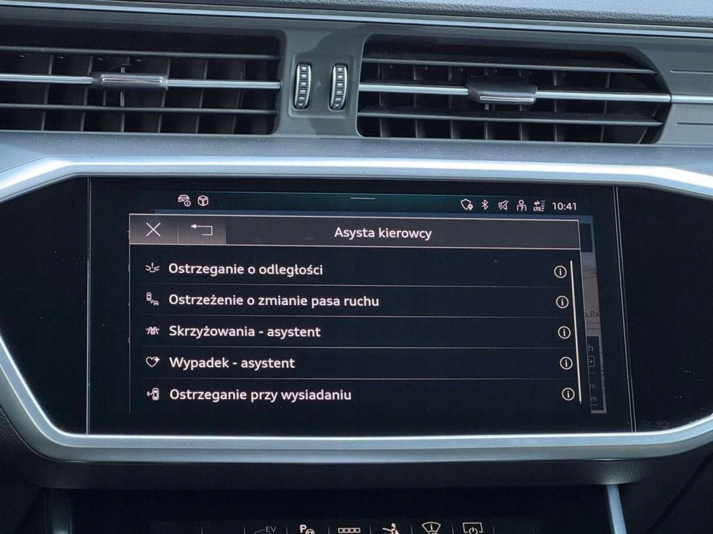 ABS, ASR (kontrola trakcji), Asystent parkowania, Asystent pasa ruchu, Czujnik deszczu, Czujniki parkowania tylne, Czujnik martwego pola, Czujnik zmierzchu, ESP (stabilizacja toru jazdy), HUD (wyświetlacz przezierny), Isofix, Kamera cofania, Poduszka powietrzna kierowcy, Poduszka powietrzna pasażera, Poduszki boczne przednie, Elektryczne szyby przednie, Elektryczne szyby tylne, Elektrycznie ustawiane fotele, Elektrycznie ustawiane lusterka, Ogrzewanie postojowe, Podgrzewana przednia szyba, Podgrzewane lusterka boczne, Podgrzewane przednie siedzenia, Podgrzewane tylne siedzenia, Przyciemniane szyby, Tapicerka skórzana, Wielofunkcyjna kierownica, Wspomaganie kierownicy, Skórzana kierownica, Bluetooth, Gniazdo USB, Nawigacja GPS, Radio fabryczne, Alufelgi, Bezkluczykowy dostęp, Elektrochromatyczne lusterka boczne, Łopatki zmiany biegów, System Start-Stop, Tempomat aktywny