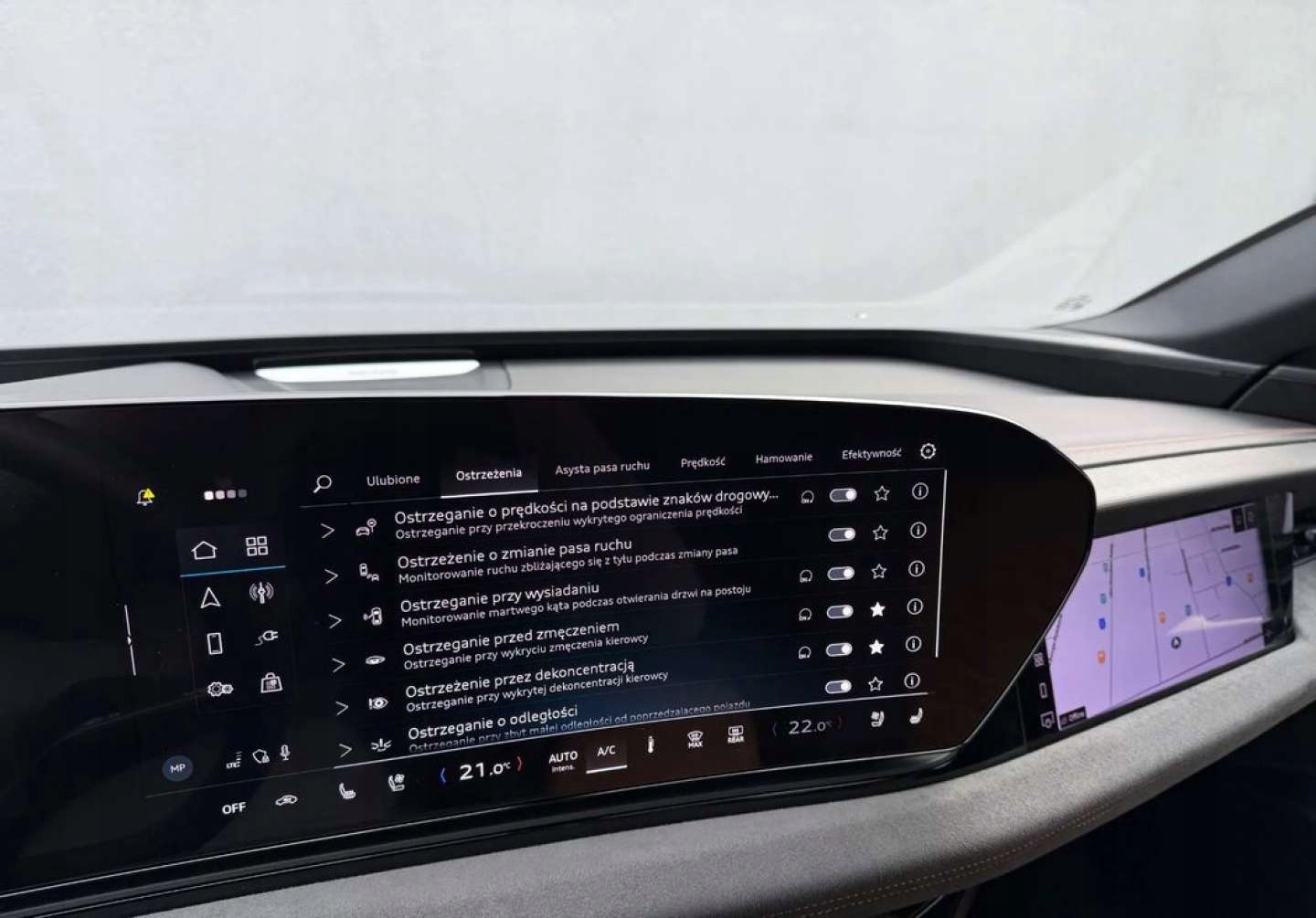 ABS, ASR (kontrola trakcji), Asystent pasa ruchu, Czujnik deszczu, Czujniki parkowania przednie, Czujniki parkowania tylne, Czujnik martwego pola, Czujnik zmierzchu, ESP (stabilizacja toru jazdy), HUD (wyświetlacz przezierny), Isofix, Kurtyny powietrzne, Poduszka powietrzna kierowcy, Poduszka powietrzna pasażera, Elektryczne szyby przednie, Elektryczne szyby tylne, Elektrycznie ustawiane fotele, Elektrycznie ustawiane lusterka, Podgrzewana kierownica, Podgrzewane lusterka boczne, Podgrzewane przednie siedzenia, Podgrzewane tylne siedzenia, Przyciemniane szyby, Tapicerka skórzana, Wentylowane fotele, Wielofunkcyjna kierownica, Wspomaganie kierownicy, Skórzana kierownica, Bluetooth, Gniazdo USB, Nawigacja GPS, Radio fabryczne, Bezkluczykowy dostęp, Elektrochromatyczne lusterka boczne, System Start-Stop, Szyberdach, Tempomat aktywny