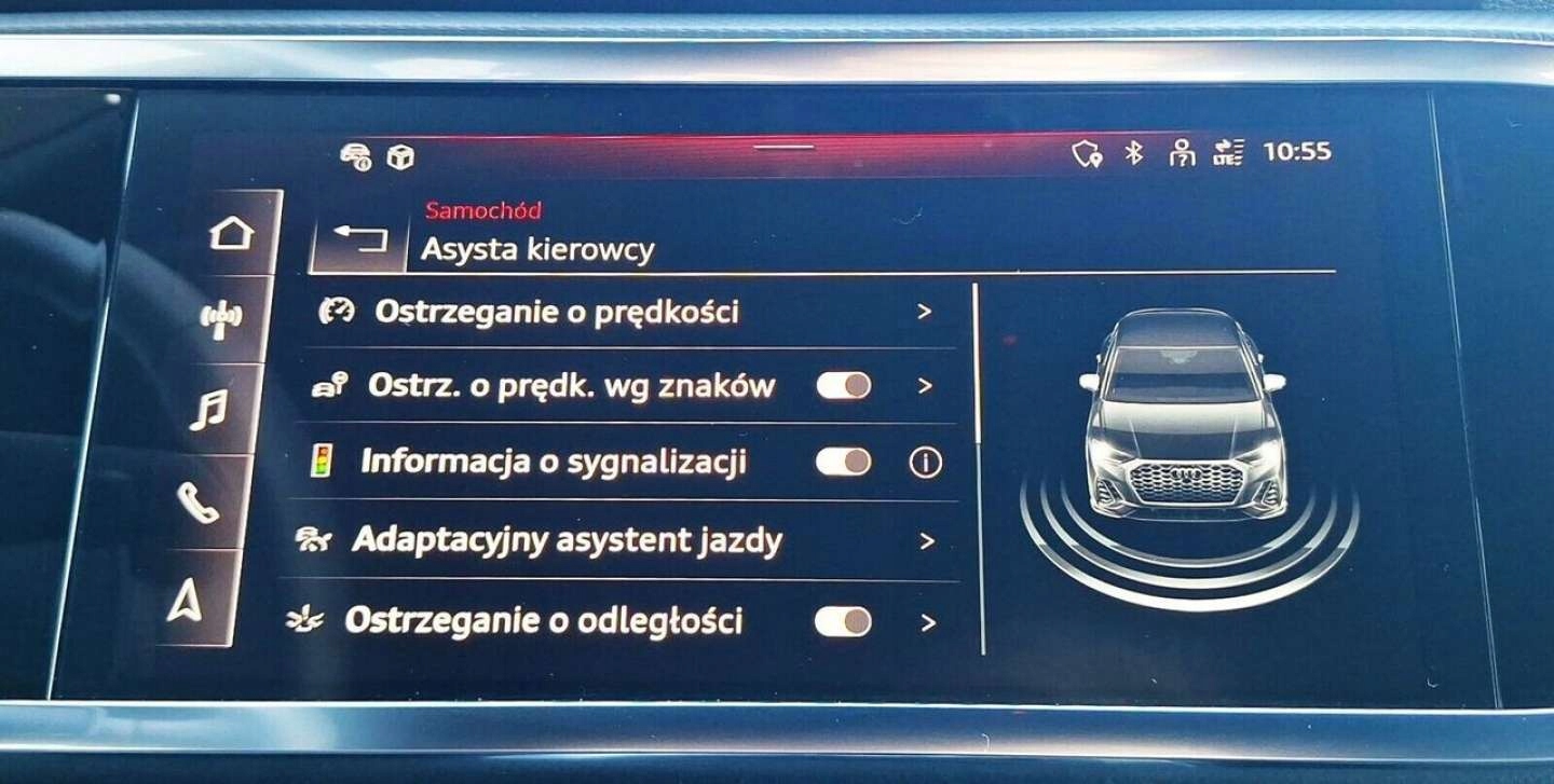 ABS, ASR (kontrola trakcji), Asystent parkowania, Asystent pasa ruchu, Czujnik deszczu, Czujniki parkowania przednie, Czujniki parkowania tylne, Czujnik zmierzchu, ESP (stabilizacja toru jazdy), Isofix, Kamera cofania, Kurtyny powietrzne, Poduszka powietrzna kierowcy, Poduszka powietrzna pasażera, Poduszki boczne przednie, Poduszki boczne tylne, Elektryczne szyby przednie, Elektryczne szyby tylne, Elektrycznie ustawiane lusterka, Podgrzewane lusterka boczne, Podgrzewane przednie siedzenia, Podgrzewane tylne siedzenia, Przyciemniane szyby, Tapicerka skórzana, Wielofunkcyjna kierownica, Wspomaganie kierownicy, Skórzana kierownica, Bluetooth, Gniazdo USB, Nawigacja GPS, Radio fabryczne, Alufelgi, Bezkluczykowy dostęp, Elektrochromatyczne lusterka boczne, Łopatki zmiany biegów, Ogranicznik prędkości, System Start-Stop, Tempomat aktywny