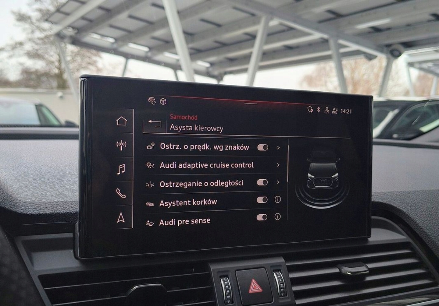 ABS, ASR (kontrola trakcji), Czujnik deszczu, Czujniki parkowania przednie, Czujniki parkowania tylne, Czujnik martwego pola, Czujnik zmierzchu, ESP (stabilizacja toru jazdy), Kamera cofania, Kurtyny powietrzne, Poduszka powietrzna kierowcy, Poduszka powietrzna pasażera, Poduszki boczne przednie, Elektryczne szyby przednie, Elektryczne szyby tylne, Elektrycznie ustawiane fotele, Elektrycznie ustawiane lusterka, Podgrzewane lusterka boczne, Podgrzewane przednie siedzenia, Podgrzewane tylne siedzenia, Przyciemniane szyby, Wielofunkcyjna kierownica, Wspomaganie kierownicy, Skórzana kierownica, Bluetooth, Gniazdo USB, Nawigacja GPS, Radio fabryczne, Elektrochromatyczne lusterka boczne, Ogranicznik prędkości, System Start-Stop, Tempomat