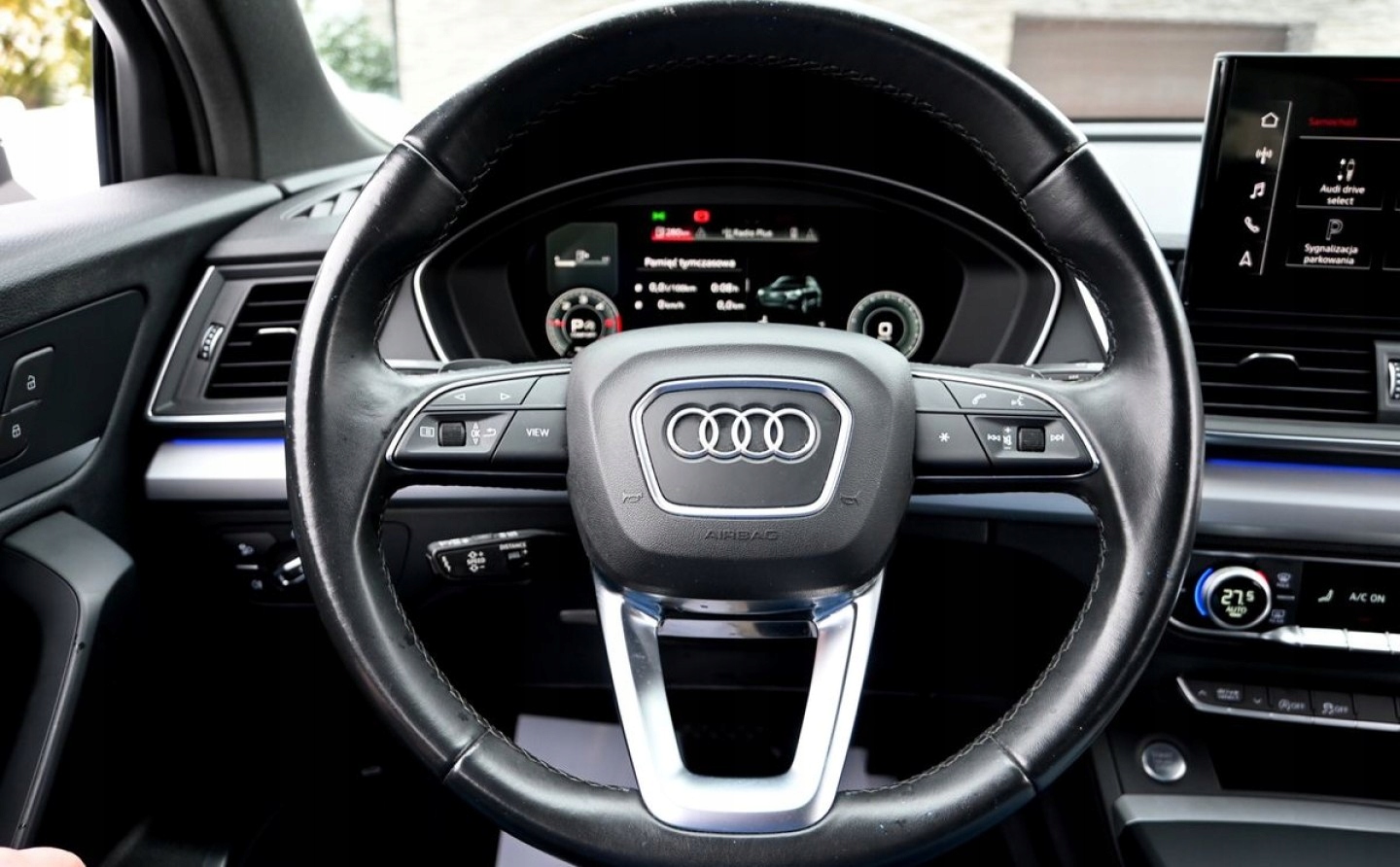 ABS, Alarm, ASR (kontrola trakcji), Asystent parkowania, Asystent pasa ruchu, Czujnik deszczu, Czujniki parkowania przednie, Czujniki parkowania tylne, Czujnik zmierzchu, ESP (stabilizacja toru jazdy), Isofix, Kurtyny powietrzne, Poduszka powietrzna chroniąca kolana, Poduszka powietrzna kierowcy, Poduszka powietrzna pasażera, Poduszki boczne przednie, Poduszki boczne tylne, Elektryczne szyby przednie, Elektryczne szyby tylne, Elektrycznie ustawiane lusterka, Podgrzewane lusterka boczne, Podgrzewane przednie siedzenia, Podgrzewane tylne siedzenia, Przyciemniane szyby, Tapicerka tekstylna, Wielofunkcyjna kierownica, Wspomaganie kierownicy, Zawieszenie adaptacyjne, Skórzana kierownica, Bluetooth, Gniazdo USB, Nawigacja GPS, Radio fabryczne, Alufelgi, Bezkluczykowy dostęp, Elektrochromatyczne lusterka boczne, Ogranicznik prędkości, System Start-Stop, Tempomat aktywny
