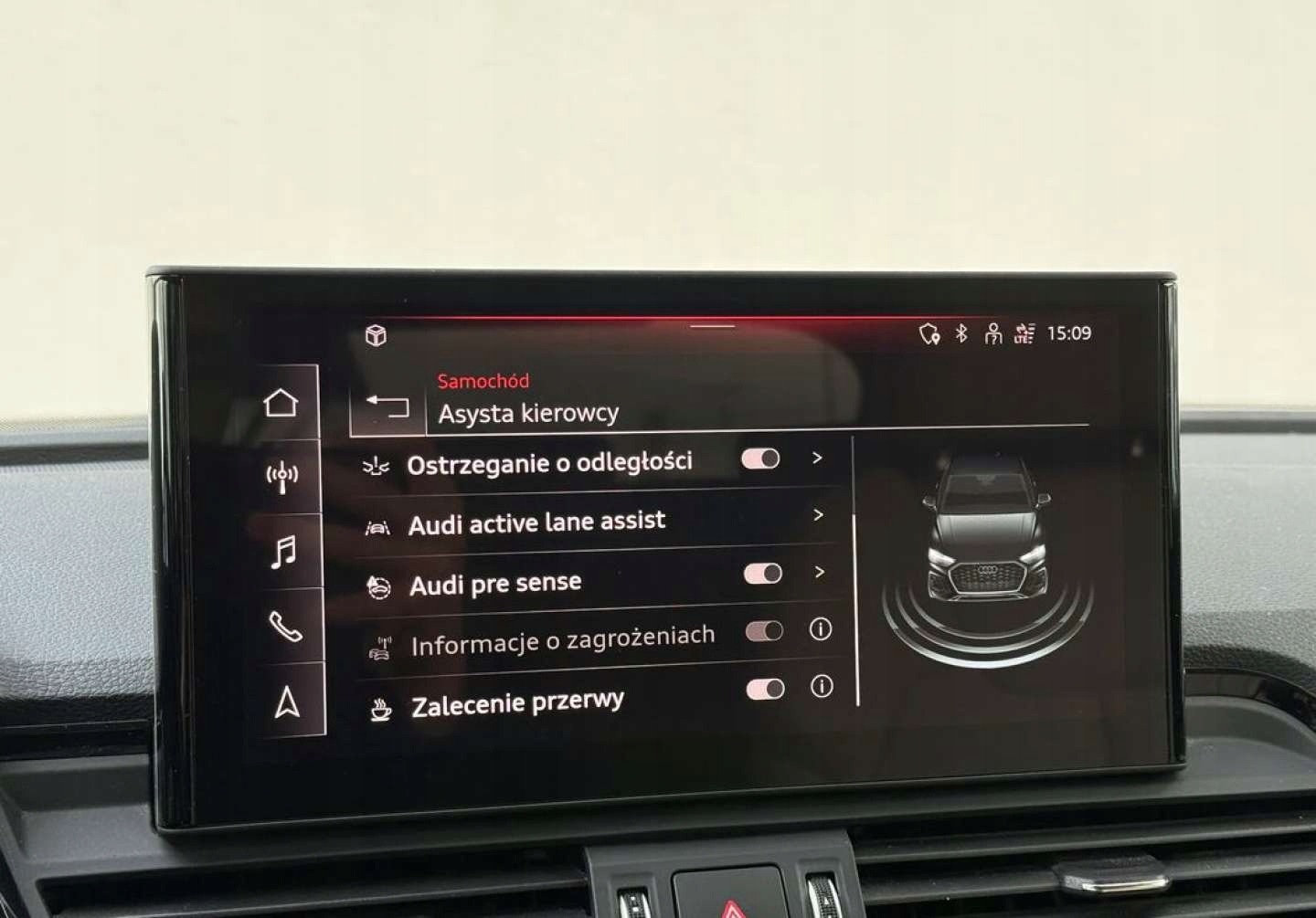 ABS, ASR (kontrola trakcji), Czujnik deszczu, Czujniki parkowania przednie, Czujniki parkowania tylne, Czujnik zmierzchu, ESP (stabilizacja toru jazdy), Isofix, Kamera cofania, Kurtyny powietrzne, Poduszka powietrzna kierowcy, Poduszka powietrzna pasażera, Poduszki boczne przednie, Elektryczne szyby przednie, Elektryczne szyby tylne, Elektrycznie ustawiane lusterka, Podgrzewane lusterka boczne, Podgrzewane przednie siedzenia, Podgrzewane tylne siedzenia, Przyciemniane szyby, Tapicerka skórzana, Wielofunkcyjna kierownica, Wspomaganie kierownicy, Skórzana kierownica, Bluetooth, Gniazdo USB, Radio fabryczne, Alufelgi, Elektrochromatyczne lusterka boczne, Ogranicznik prędkości, System Start-Stop, Tempomat aktywny
