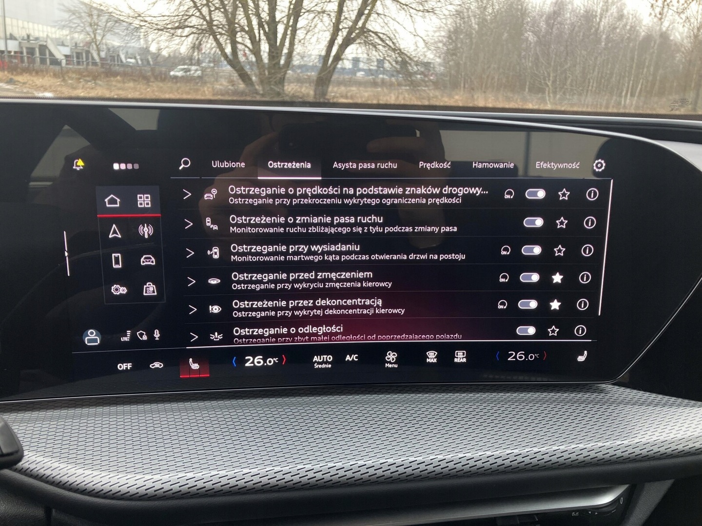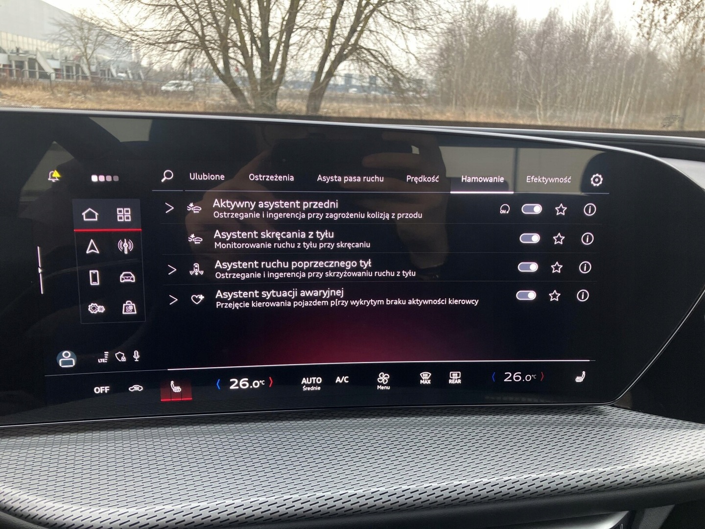 Asystent pasa ruchu, Poduszki boczne przednie, Poduszki boczne tylne, Czujniki parkowania tylne, Asystent parkowania, Poduszka powietrzna kierowcy, Poduszka powietrzna pasażera, HUD (wyświetlacz przezierny), Czujnik martwego pola, Kamera cofania, Czujniki parkowania przednie, ABS, ESP (stabilizacja toru jazdy), Poduszka powietrzna chroniąca kolana, Elektrycznie ustawiane lusterka, Podgrzewane lusterka boczne, Przyciemniane szyby, Elektryczne szyby przednie, Elektryczne szyby tylne, Elektrycznie ustawiane fotele, Podgrzewane tylne siedzenia, Podgrzewane przednie siedzenia, Tapicerka skórzana, Wspomaganie kierownicy, Gniazdo USB, Bluetooth, Radio niefabryczne, Nawigacja GPS, Alufelgi, Tempomat, Tempomat aktywny, Ogranicznik prędkości