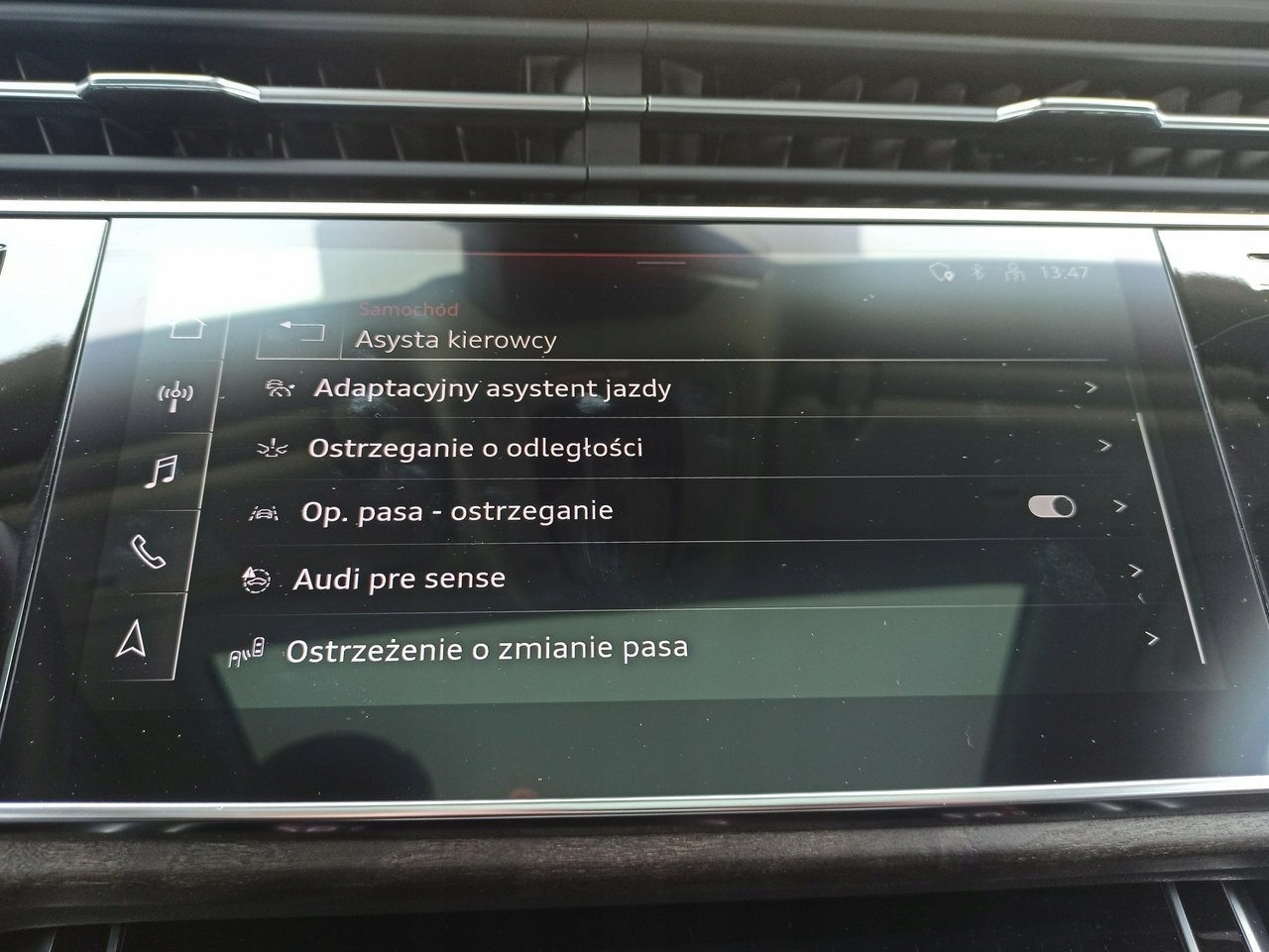 ABS, Alarm, Czujnik deszczu, Czujniki parkowania tylne, Immobilizer, Czujnik martwego pola, Czujniki parkowania przednie, Poduszka powietrzna kierowcy, Poduszka powietrzna pasażera, ESP (stabilizacja toru jazdy), HUD (wyświetlacz przezierny), Kamera cofania, Elektryczne szyby przednie, Elektryczne szyby tylne, Elektrycznie ustawiane lusterka, Wielofunkcyjna kierownica, Podgrzewane lusterka boczne, Podgrzewane tylne siedzenia, Tapicerka ciemna, Tapicerka skórzana, Bluetooth, Gniazdo AUX, Gniazdo USB, Nawigacja GPS, Centralny zamek, Komputer pokładowy, Dach panoramiczny, System Start-Stop