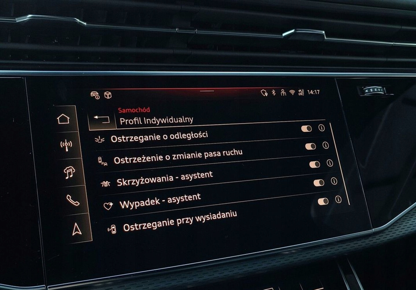 ABS, Alarm, ASR (kontrola trakcji), Asystent pasa ruchu, Czujniki parkowania przednie, Czujniki parkowania tylne, Czujnik martwego pola, Czujnik zmierzchu, ESP (stabilizacja toru jazdy), HUD (wyświetlacz przezierny), Isofix, Kurtyny powietrzne, Poduszka powietrzna kierowcy, Poduszka powietrzna pasażera, Elektryczne szyby przednie, Elektryczne szyby tylne, Elektrycznie ustawiane fotele, Podgrzewana kierownica, Podgrzewane lusterka boczne, Podgrzewane przednie siedzenia, Podgrzewane tylne siedzenia, Przyciemniane szyby, Wielofunkcyjna kierownica, Wspomaganie kierownicy, Skórzana kierownica, Bluetooth, Gniazdo USB, Nawigacja GPS, Radio fabryczne, Bezkluczykowy dostęp, Łopatki zmiany biegów