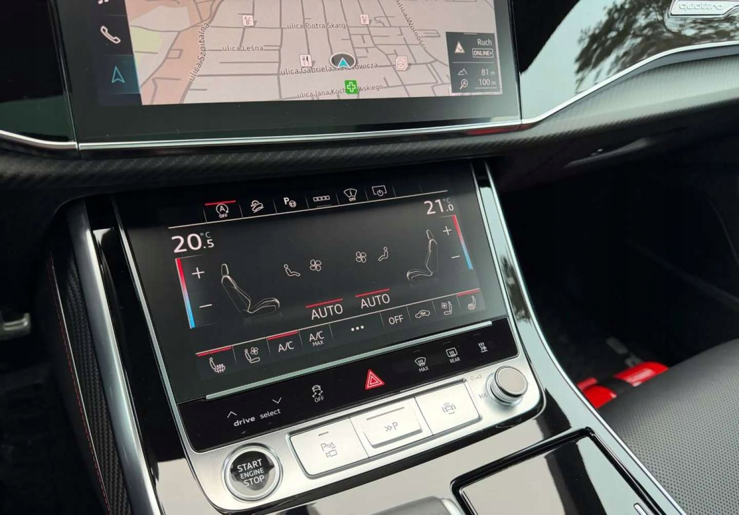 ABS, ASR (kontrola trakcji), Asystent pasa ruchu, Czujnik deszczu, Czujniki parkowania przednie, Czujniki parkowania tylne, Czujnik martwego pola, Czujnik zmierzchu, ESP (stabilizacja toru jazdy), HUD (wyświetlacz przezierny), Isofix, Kurtyny powietrzne, Poduszka powietrzna chroniąca kolana, Poduszka powietrzna kierowcy, Poduszka powietrzna pasażera, Poduszki boczne przednie, Elektryczne szyby przednie, Elektryczne szyby tylne, Elektrycznie ustawiane fotele, Elektrycznie ustawiane lusterka, Podgrzewane lusterka boczne, Podgrzewane przednie siedzenia, Podgrzewane tylne siedzenia, Przyciemniane szyby, Tapicerka skórzana, Wentylowane fotele, Wielofunkcyjna kierownica, Wspomaganie kierownicy, Skórzana kierownica, Bluetooth, Gniazdo USB, Nawigacja GPS, Radio fabryczne, Bezkluczykowy dostęp, Elektrochromatyczne lusterka boczne, Łopatki zmiany biegów, System Start-Stop, Szyberdach, Tempomat aktywny