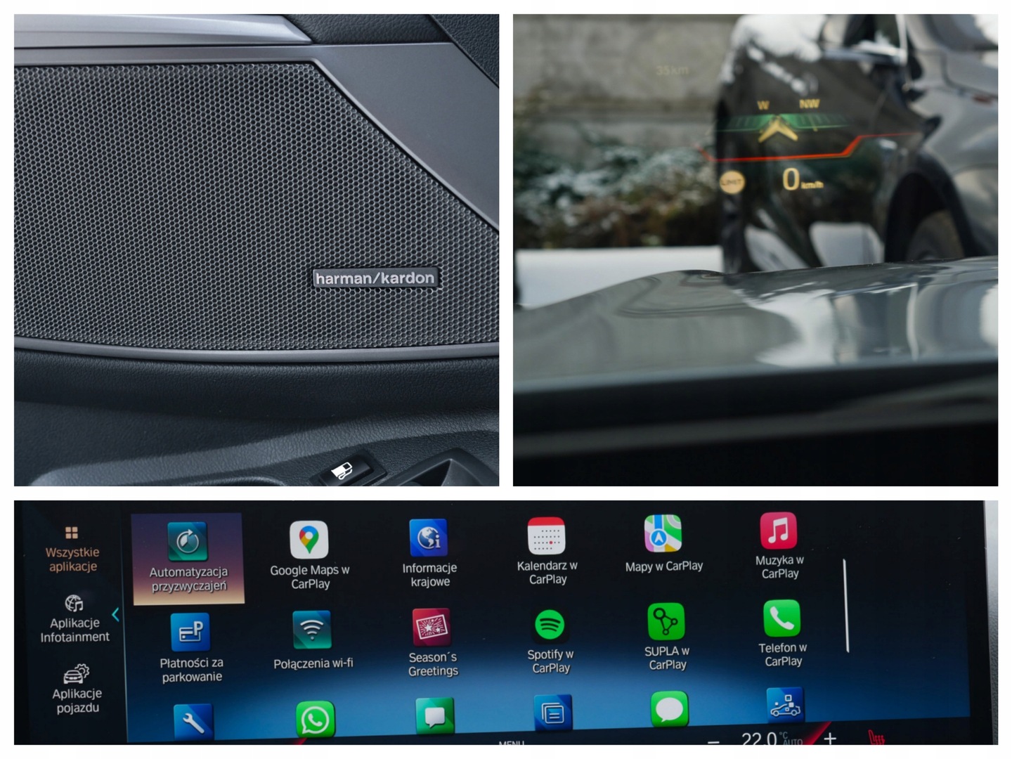 ASR (kontrola trakcji), Asystent parkowania, Asystent pasa ruchu, Czujnik deszczu, Czujniki parkowania przednie, Czujniki parkowania tylne, Czujnik martwego pola, Czujnik zmierzchu, ESP (stabilizacja toru jazdy), HUD (wyświetlacz przezierny), Isofix, Kamera cofania, Kurtyny powietrzne, Elektrycznie ustawiane fotele, Elektrycznie ustawiane lusterka, Ogrzewanie postojowe, Podgrzewane lusterka boczne, Podgrzewane przednie siedzenia, Przyciemniane szyby, Skórzana kierownica, Tapicerka skórzana, Wielofunkcyjna kierownica, Bluetooth, Gniazdo USB, Nawigacja GPS, Alufelgi, Elektrochromatyczne lusterka boczne, Elektrochromatyczne lusterko wsteczne, Komputer pokładowy, Liczniki LCD, Łopatki zmiany biegów, Ogranicznik prędkości, Otwieranie pilotem, Relingi dachowe, Tempomat aktywny