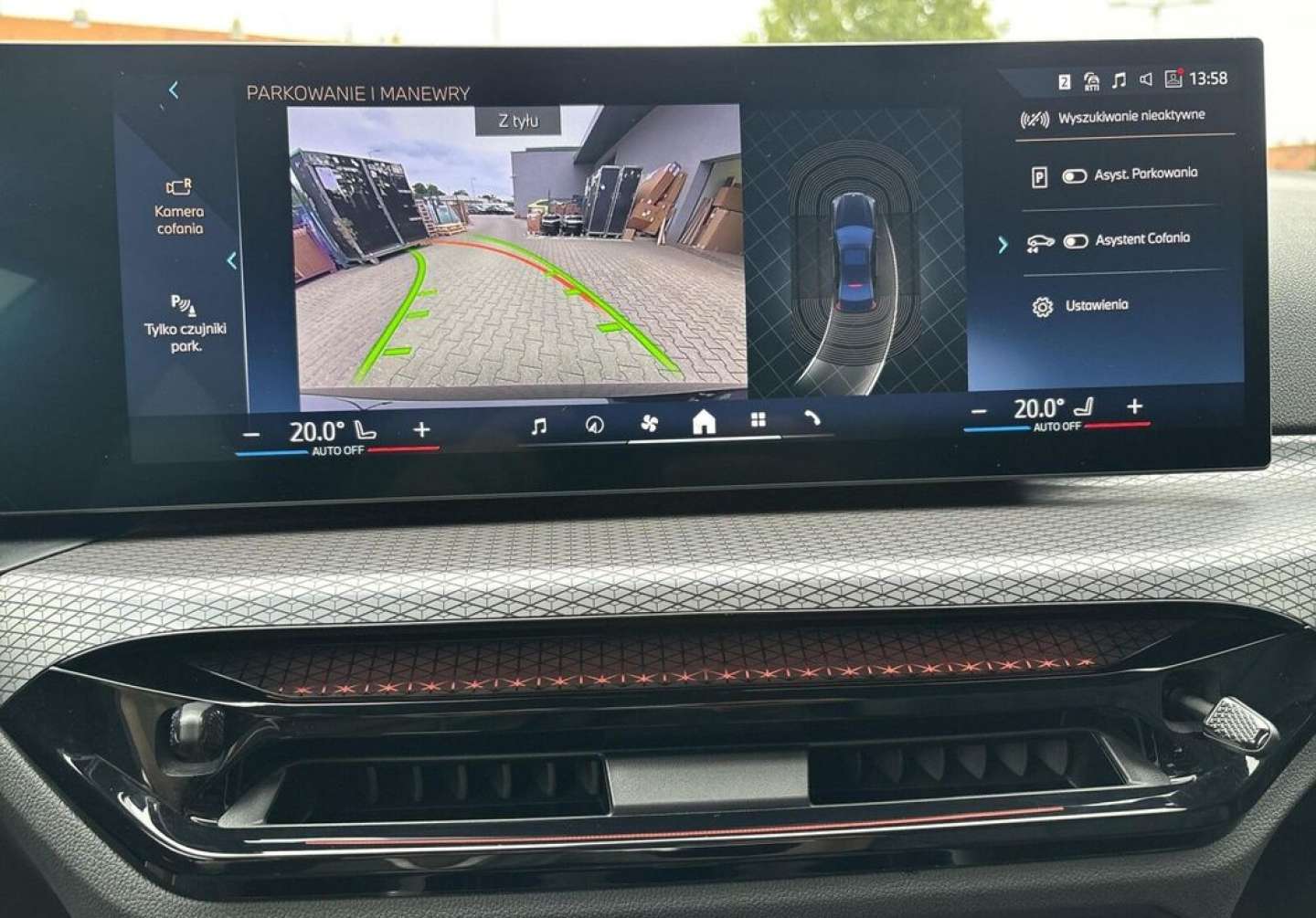 ABS, Asystent parkowania, Asystent pasa ruchu, Czujnik deszczu, Czujniki parkowania tylne, Isofix, Kamera cofania, Poduszka powietrzna kierowcy, Poduszka powietrzna pasażera, Poduszki boczne przednie, Poduszki boczne tylne, Elektrycznie ustawiane lusterka, Ogrzewanie postojowe, Podgrzewane lusterka boczne, Podgrzewane przednie siedzenia, Tapicerka skórzana, Wielofunkcyjna kierownica, Wspomaganie kierownicy, Bluetooth, Gniazdo USB, Alufelgi, Elektrochromatyczne lusterka boczne, Szyberdach, Tempomat
