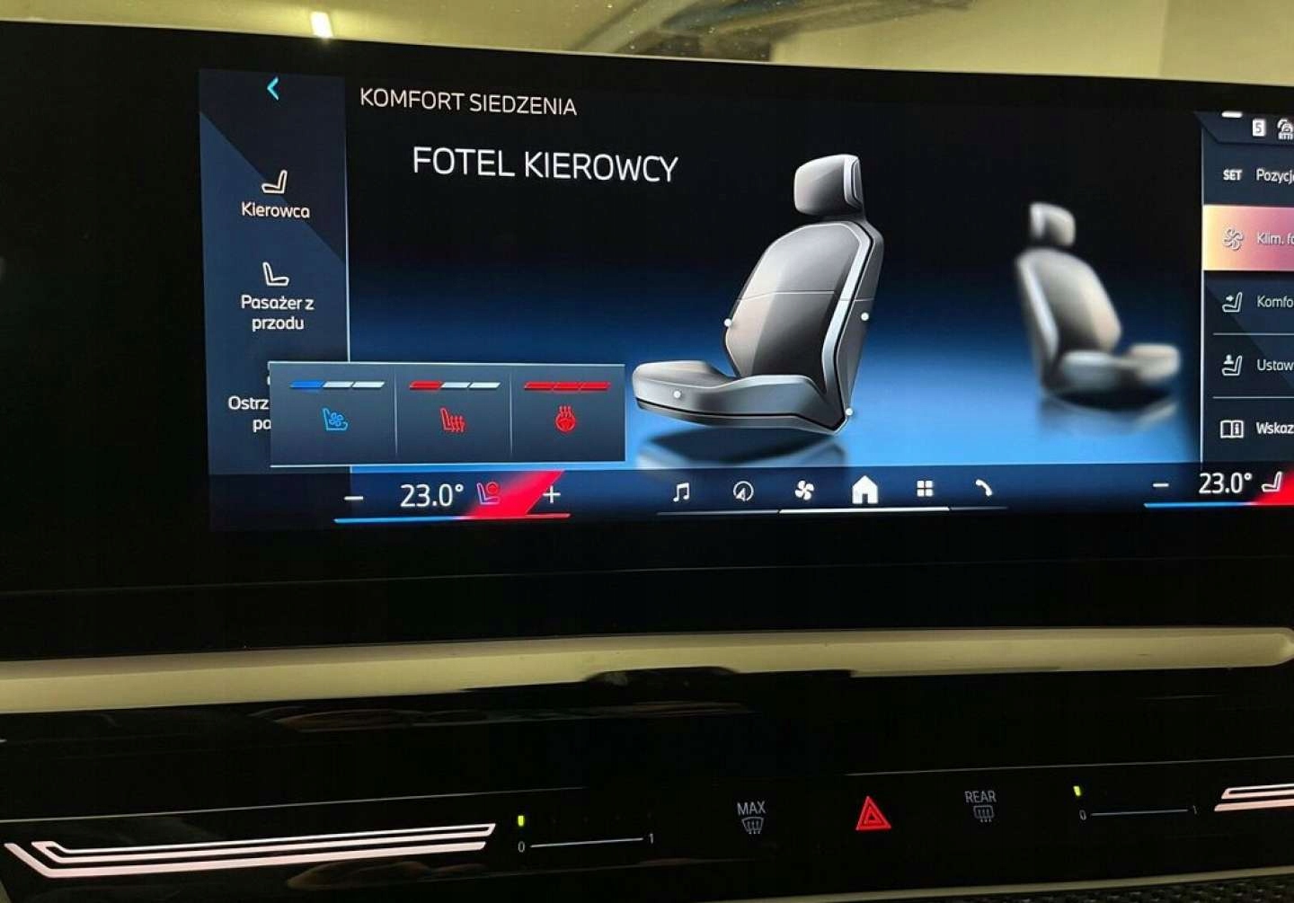 ABS, Asystent parkowania, Asystent pasa ruchu, Czujnik deszczu, Czujniki parkowania tylne, Isofix, Kamera cofania, Poduszka powietrzna kierowcy, Poduszka powietrzna pasażera, Poduszki boczne przednie, Poduszki boczne tylne, Elektrycznie ustawiane lusterka, Podgrzewane lusterka boczne, Podgrzewane przednie siedzenia, Tapicerka tekstylna, Wielofunkcyjna kierownica, Wspomaganie kierownicy, Gniazdo USB, Alufelgi, Elektrochromatyczne lusterka boczne, Tempomat