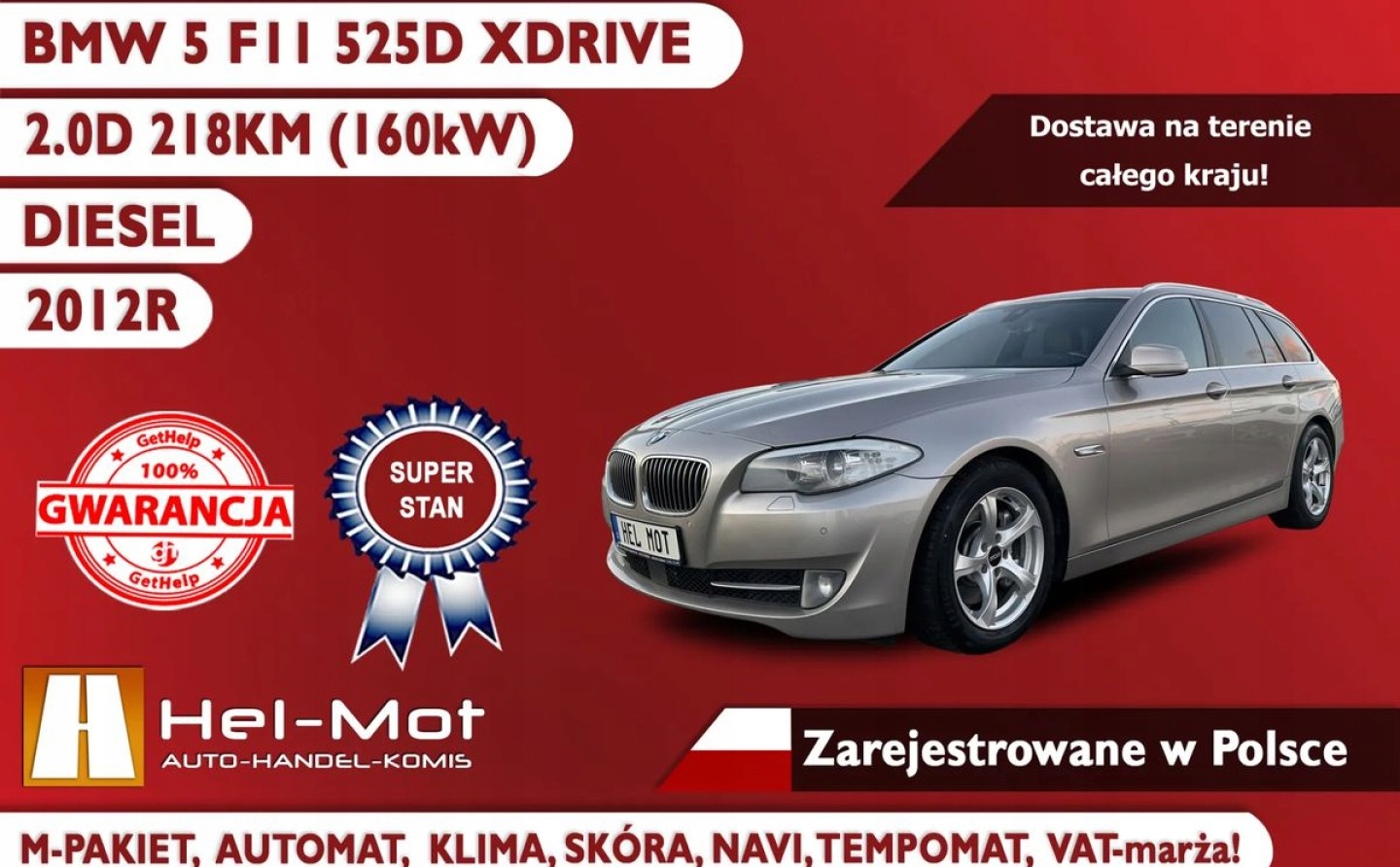 BMW Seria 5 F11, M-Pakiet, 2012, Klima, Navi, Alu, Zarejestrowana w PL, VA