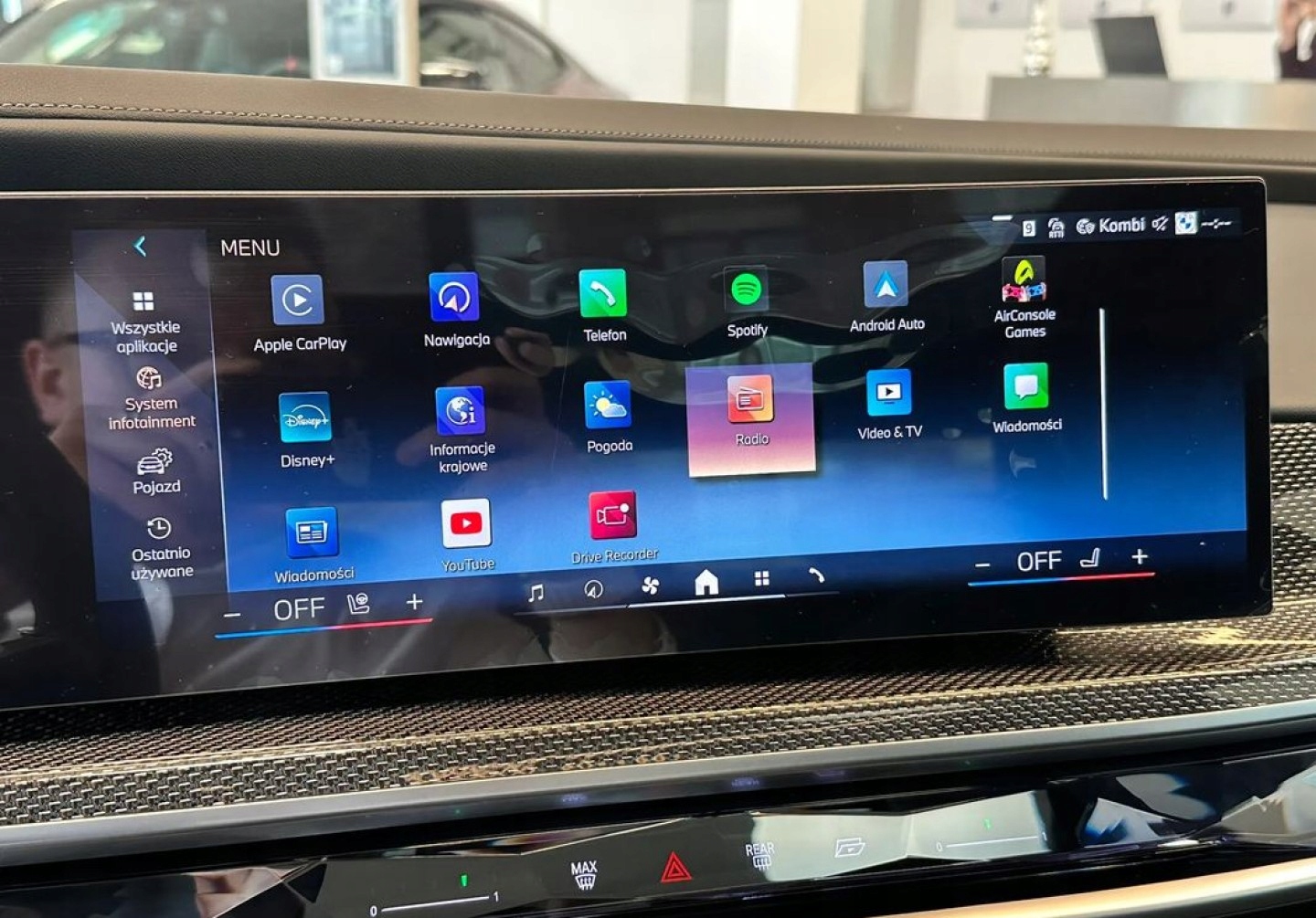 ABS, Alarm, ASR (kontrola trakcji), Asystent parkowania, Czujnik deszczu, Czujniki parkowania przednie, Czujniki parkowania tylne, Czujnik martwego pola, Czujnik zmierzchu, ESP (stabilizacja toru jazdy), HUD (wyświetlacz przezierny), Isofix, Kamera cofania, Kurtyny powietrzne, Poduszka powietrzna kierowcy, Poduszka powietrzna pasażera, Poduszki boczne przednie, Elektrycznie ustawiane fotele, Elektrycznie ustawiane lusterka, Ogrzewanie postojowe, Podgrzewane lusterka boczne, Podgrzewane przednie siedzenia, Podgrzewane tylne siedzenia, Tapicerka skórzana, Wielofunkcyjna kierownica, Skórzana kierownica, Bluetooth, Gniazdo USB, Nawigacja GPS, Alufelgi, Bezkluczykowy dostęp, Elektrochromatyczne lusterka boczne, Łopatki zmiany biegów, Ogranicznik prędkości, System Start-Stop, Szyberdach