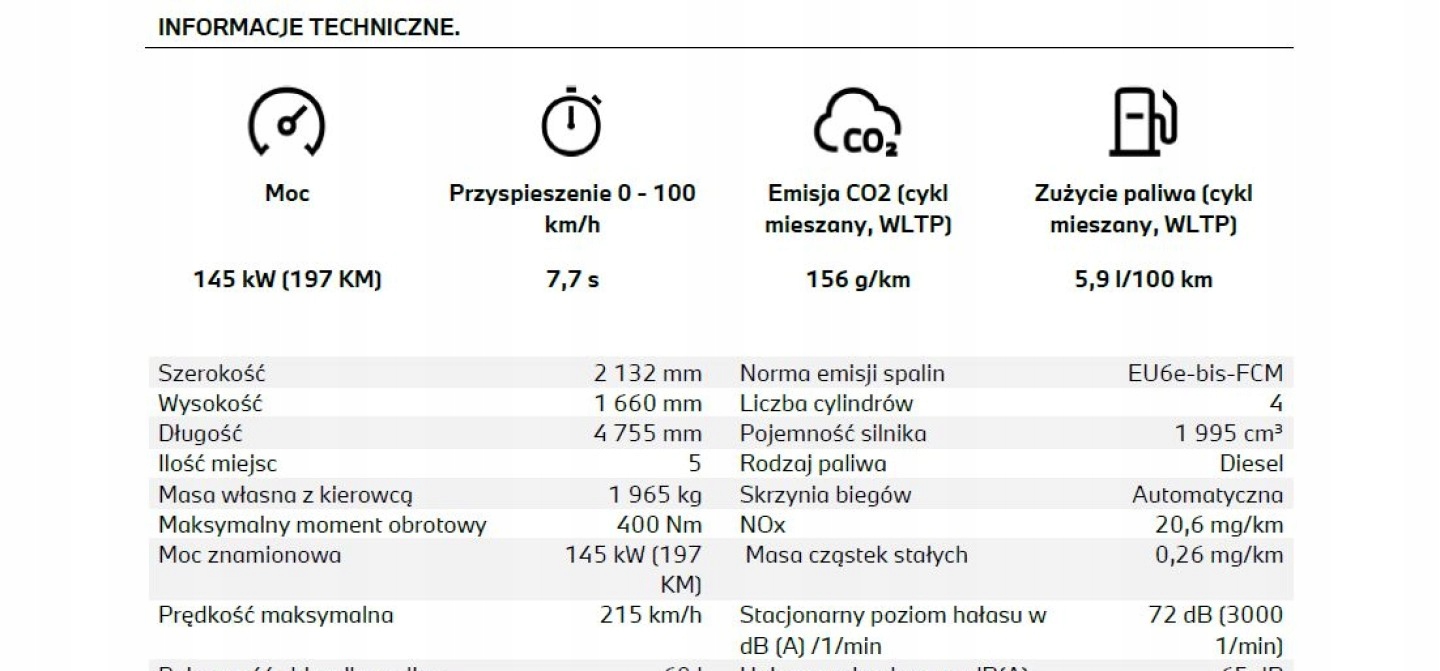 ASR (kontrola trakcji), Asystent parkowania, Asystent pasa ruchu, Czujnik deszczu, Czujniki parkowania przednie, Czujniki parkowania tylne, Czujnik martwego pola, Czujnik zmierzchu, Kamera cofania, Elektryczne szyby przednie, Elektryczne szyby tylne, Elektrycznie ustawiane fotele, Elektrycznie ustawiane lusterka, Podgrzewana kierownica, Podgrzewane lusterka boczne, Podgrzewane przednie siedzenia, Podgrzewane tylne siedzenia, Przyciemniane szyby, Wielofunkcyjna kierownica, Wspomaganie kierownicy, Skórzana kierownica, Bluetooth, Nawigacja GPS, Radio fabryczne, Bezkluczykowy dostęp, Elektrochromatyczne lusterka boczne, Łopatki zmiany biegów, Ogranicznik prędkości, System Start-Stop, Tempomat