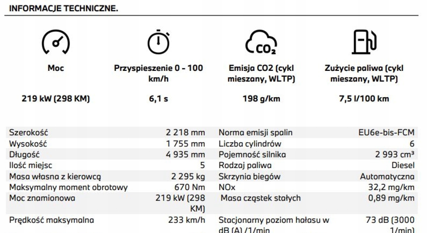 ABS, Alarm, ASR (kontrola trakcji), Asystent parkowania, Asystent pasa ruchu, Czujnik deszczu, Czujniki parkowania przednie, Czujniki parkowania tylne, Czujnik martwego pola, Czujnik zmierzchu, ESP (stabilizacja toru jazdy), HUD (wyświetlacz przezierny), Isofix, Kamera cofania, Kurtyny powietrzne, Poduszka powietrzna kierowcy, Poduszka powietrzna pasażera, Poduszki boczne przednie, Poduszki boczne tylne, Elektryczne szyby przednie, Elektryczne szyby tylne, Elektrycznie ustawiane fotele, Elektrycznie ustawiane lusterka, Podgrzewana kierownica, Podgrzewane lusterka boczne, Podgrzewane przednie siedzenia, Podgrzewane tylne siedzenia, Przyciemniane szyby, Tapicerka skórzana, Wentylowane fotele, Wielofunkcyjna kierownica, Wspomaganie kierownicy, Skórzana kierownica, Bluetooth, Gniazdo USB, Nawigacja GPS, Radio fabryczne, Alufelgi, Bezkluczykowy dostęp, Elektrochromatyczne lusterka boczne, Łopatki zmiany biegów, Ogranicznik prędkości, System Start-Stop, Szyberdach, Tempomat aktywny