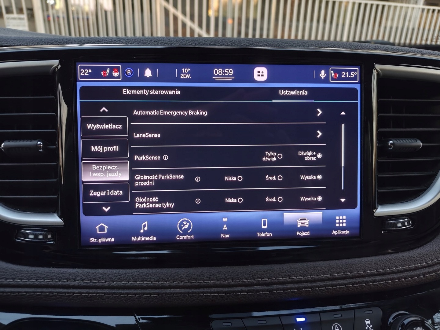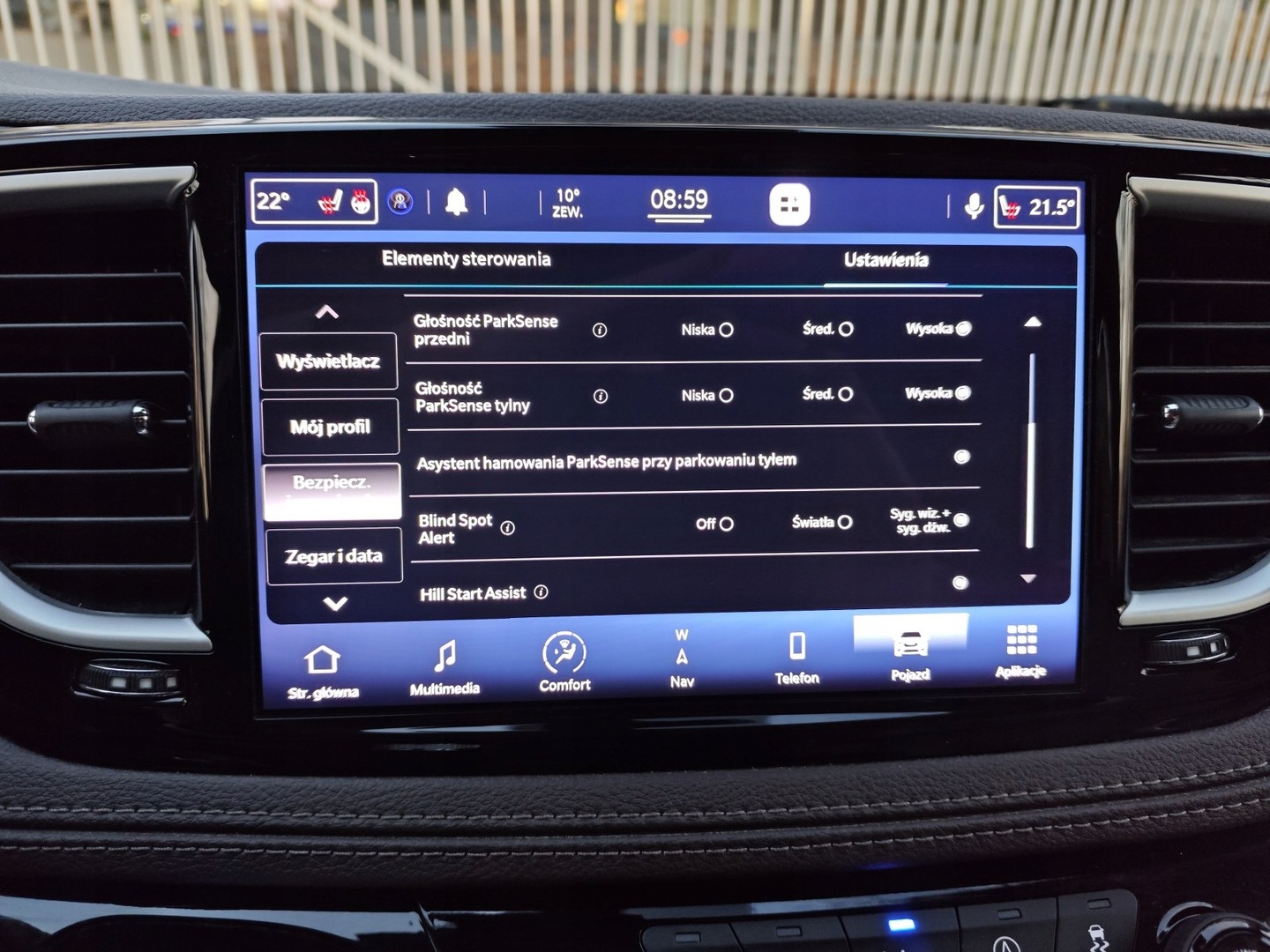 ABS, Alarm, ASR (kontrola trakcji), Asystent parkowania, Asystent pasa ruchu, Czujnik deszczu, Czujnik martwego pola, Czujnik zmierzchu, ESP (stabilizacja toru jazdy), Immobilizer, Isofix, Kamera cofania, Poduszka powietrzna kierowcy, Poduszka powietrzna pasażera, Poduszki boczne przednie, Poduszki boczne tylne, Elektryczne szyby przednie, Elektryczne szyby tylne, Elektrycznie ustawiane fotele, Elektrycznie ustawiane lusterka, Podgrzewana kierownica, Podgrzewana tylna szyba, Podgrzewane lusterka boczne, Podgrzewane przednie siedzenia, Przyciemniane szyby, Skórzana kierownica, Tapicerka ciemna, Tapicerka skórzana, Wielofunkcyjna kierownica, Wspomaganie kierownicy, Bluetooth, Gniazdo AUX, Gniazdo USB, Radio fabryczne, Alufelgi, Bezkluczykowy dostęp, Centralny zamek, Elektrochromatyczne lusterko wsteczne, Komputer pokładowy, Liczniki LCD, Ogranicznik prędkości, Otwieranie pilotem, Relingi dachowe, System Start-Stop, Tempomat