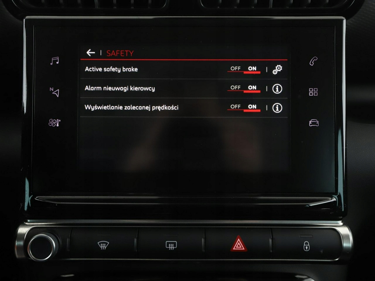 ABS, ASR (kontrola trakcji), Czujnik deszczu, Czujniki parkowania tylne, Asystent pasa ruchu, Czujniki parkowania przednie, Poduszka powietrzna kierowcy, Poduszka powietrzna pasażera, Poduszki boczne przednie, ESP (stabilizacja toru jazdy), Isofix, Kamera cofania, Elektryczne szyby przednie, Elektryczne szyby tylne, Elektrycznie ustawiane lusterka, Przyciemniane szyby, Wielofunkcyjna kierownica, Wspomaganie kierownicy, Tapicerka skórzana, Bluetooth, Nawigacja GPS, Centralny zamek, Komputer pokładowy, Relingi dachowe, Tempomat, System Start-Stop
