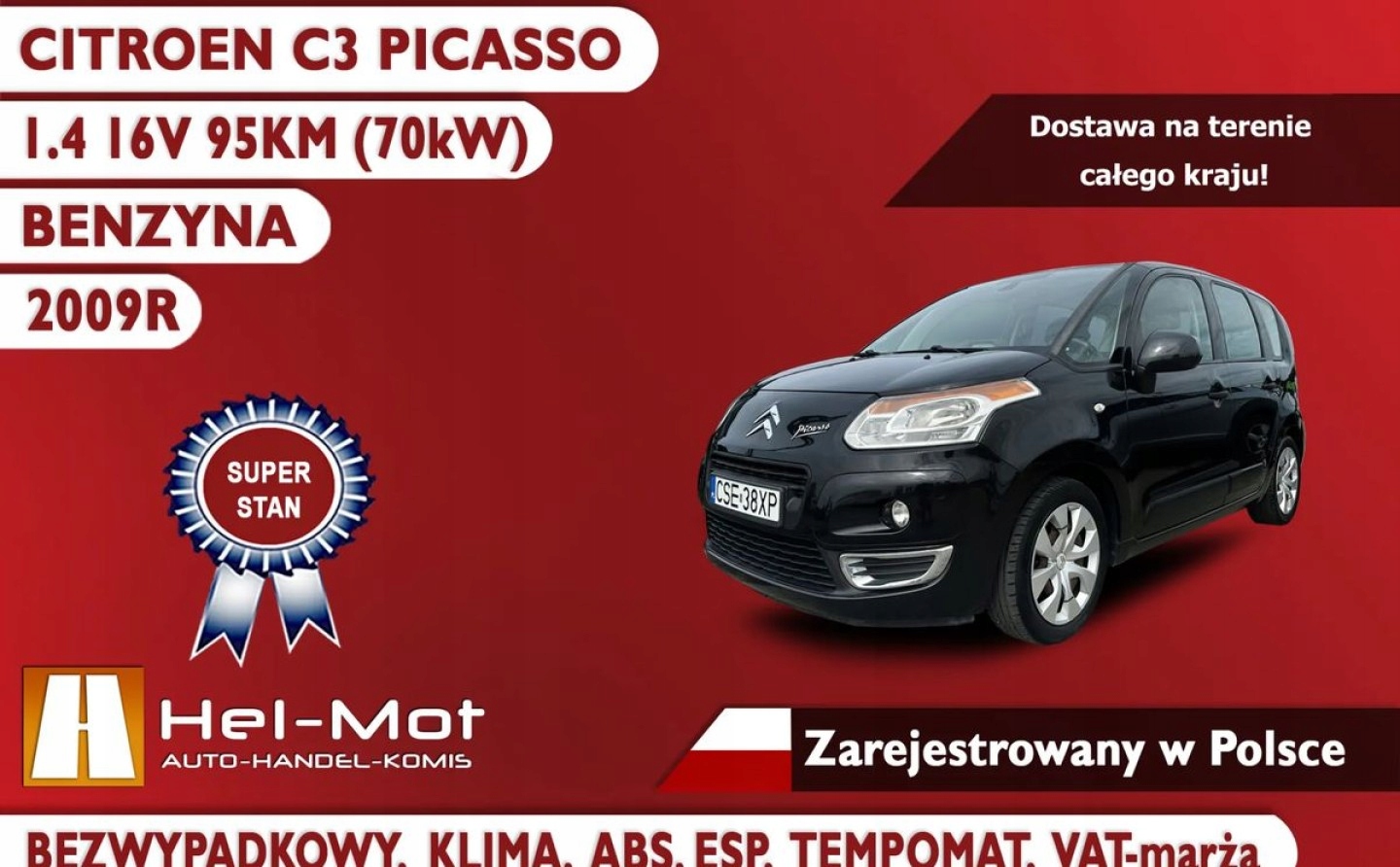 Citroen C3 Picasso 1.4 16V 95KM, Klima, Zarejestrowany w Polsce, VAT-Marza