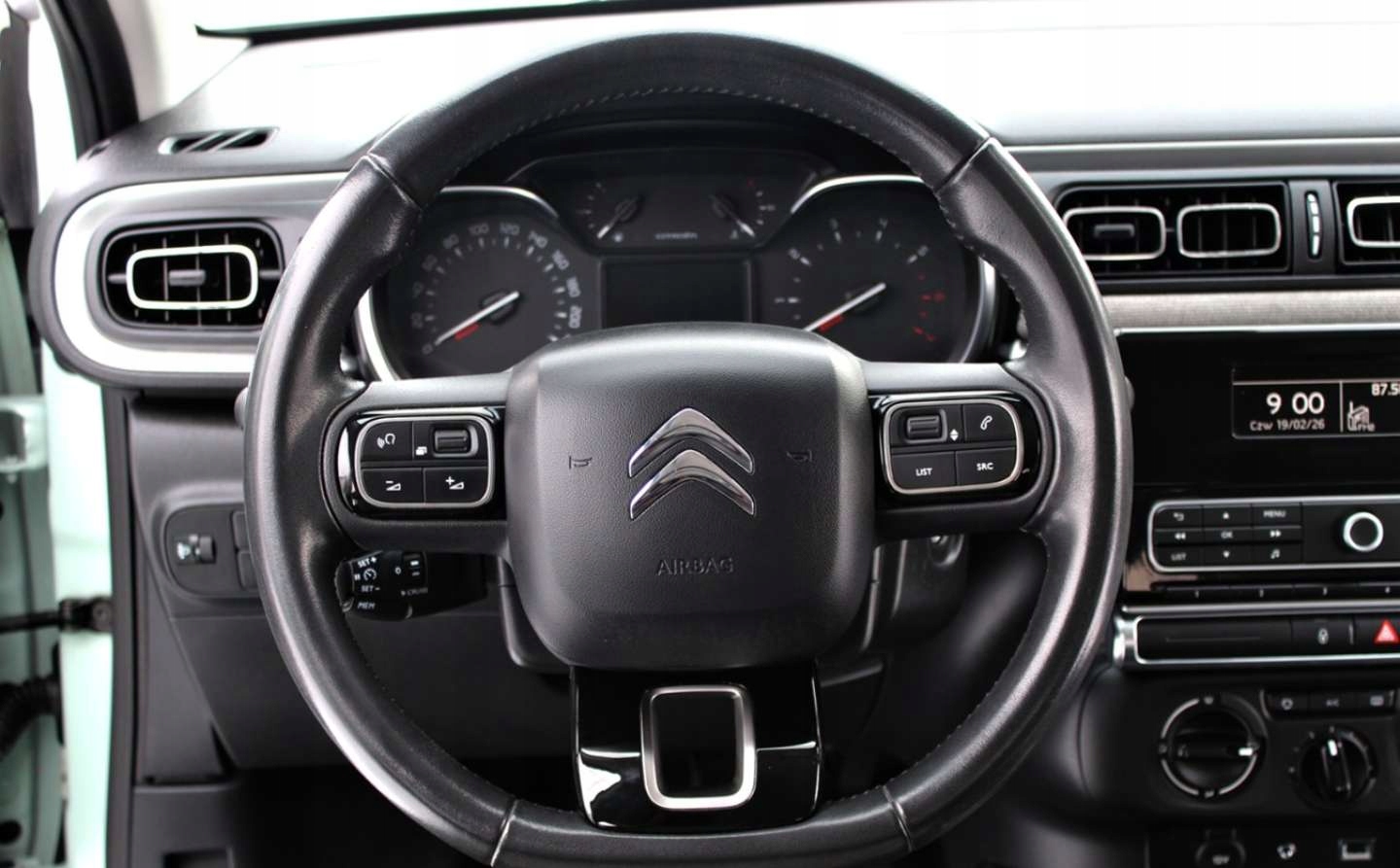 ABS, ASR (kontrola trakcji), Czujniki parkowania tylne, ESP (stabilizacja toru jazdy), Isofix, Kurtyny powietrzne, Poduszka powietrzna kierowcy, Poduszki boczne przednie, Elektryczne szyby przednie, Elektryczne szyby tylne, Elektrycznie ustawiane lusterka, Tapicerka tekstylna, Wielofunkcyjna kierownica, Wspomaganie kierownicy, Skórzana kierownica, Radio fabryczne, Elektrochromatyczne lusterka boczne, Tempomat