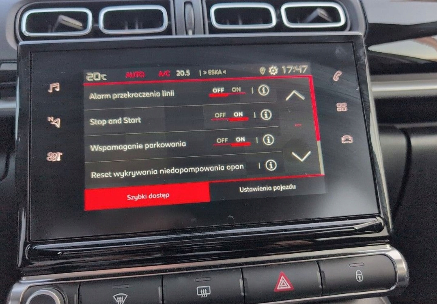 ABS, ASR (kontrola trakcji), Czujniki parkowania tylne, ESP (stabilizacja toru jazdy), Isofix, Poduszka powietrzna pasażera, Poduszki boczne przednie, Elektryczne szyby przednie, Elektrycznie ustawiane lusterka, Podgrzewane lusterka boczne, Przyciemniane szyby, Wspomaganie kierownicy, Bluetooth, Gniazdo USB, Radio fabryczne, Elektrochromatyczne lusterka boczne, Ogranicznik prędkości, System Start-Stop, Tempomat