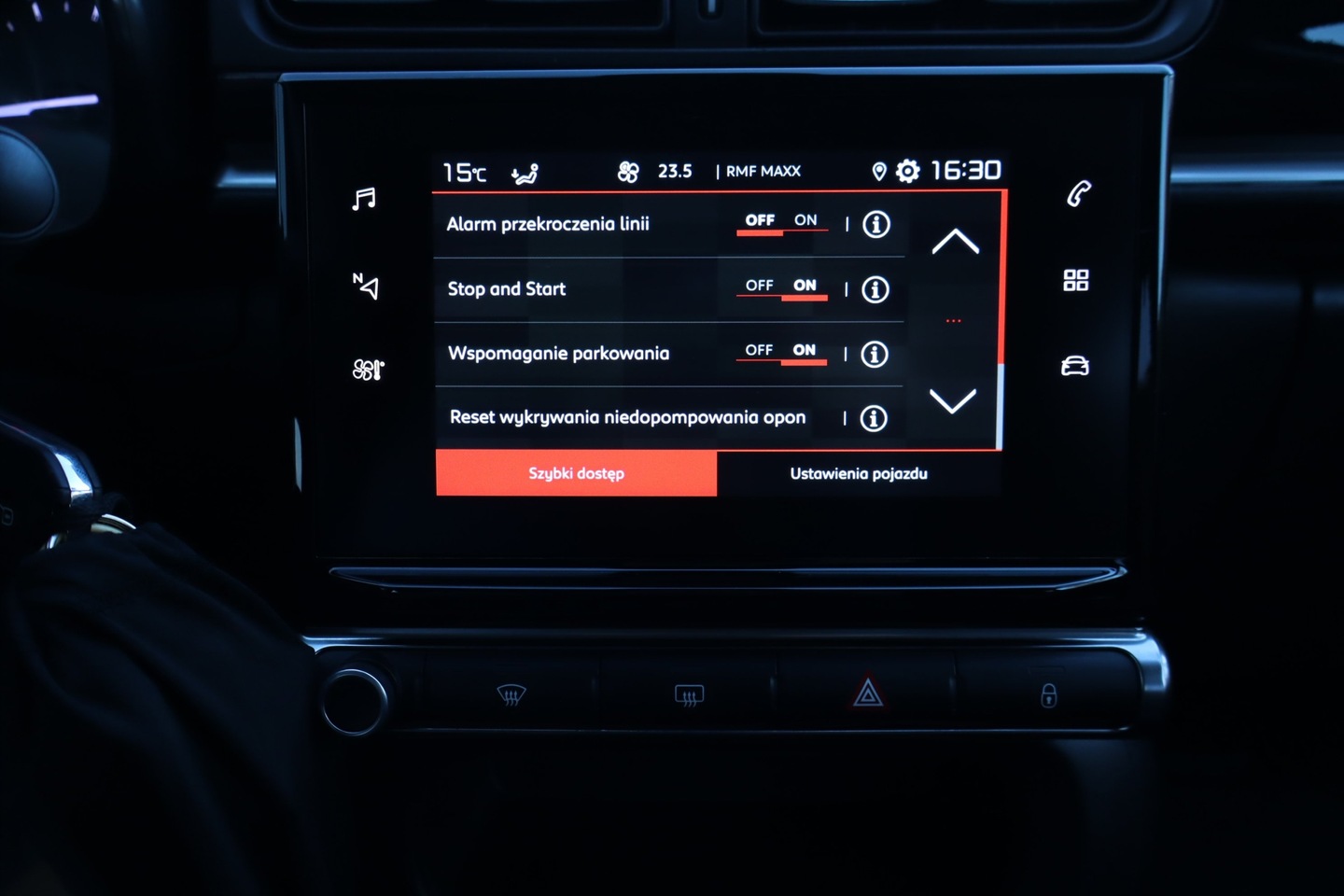 Poduszka powietrzna kierowcy, ASR (kontrola trakcji), Czujnik deszczu, ABS, Poduszka powietrzna chroniąca kolana, Poduszki boczne przednie, ESP (stabilizacja toru jazdy), Poduszka powietrzna pasażera, Isofix, Przyciemniane szyby, Wielofunkcyjna kierownica, Elektrycznie ustawiane lusterka, Elektryczne szyby przednie, Wspomaganie kierownicy, Bluetooth, CD, Gniazdo USB, MP3, Gniazdo SD, System Start-Stop, Komputer pokładowy, Tempomat, Otwieranie pilotem, Ogranicznik prędkości