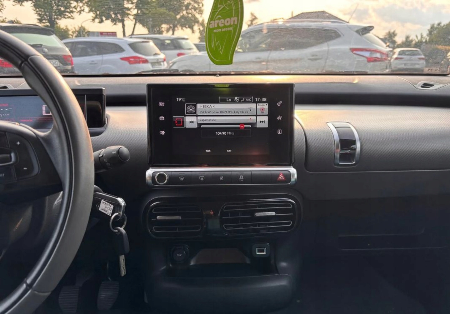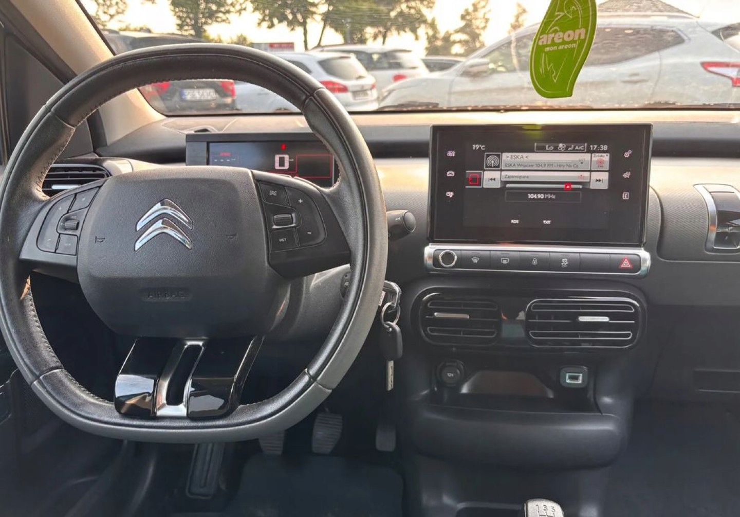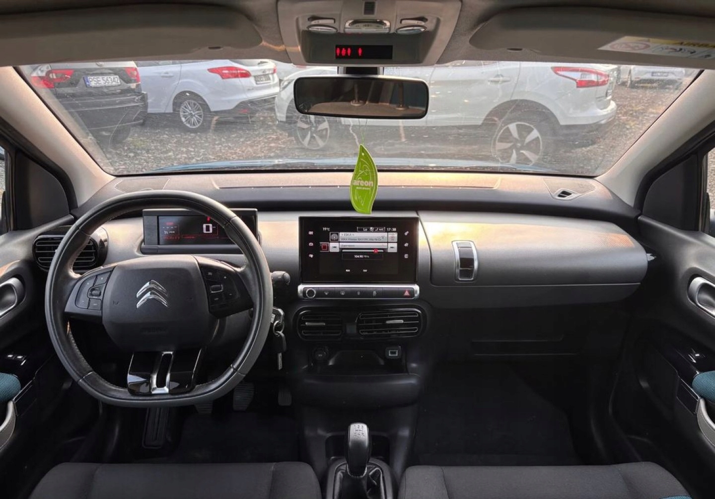 ABS, ASR (kontrola trakcji), Czujniki parkowania tylne, Czujnik zmierzchu, ESP (stabilizacja toru jazdy), Kamera cofania, Kurtyny powietrzne, Poduszki boczne przednie, Elektryczne szyby przednie, Elektrycznie ustawiane lusterka, Tapicerka tekstylna, Wielofunkcyjna kierownica, Wspomaganie kierownicy, Skórzana kierownica, Bluetooth, Radio fabryczne, Elektrochromatyczne lusterka boczne, Ogranicznik prędkości, Tempomat