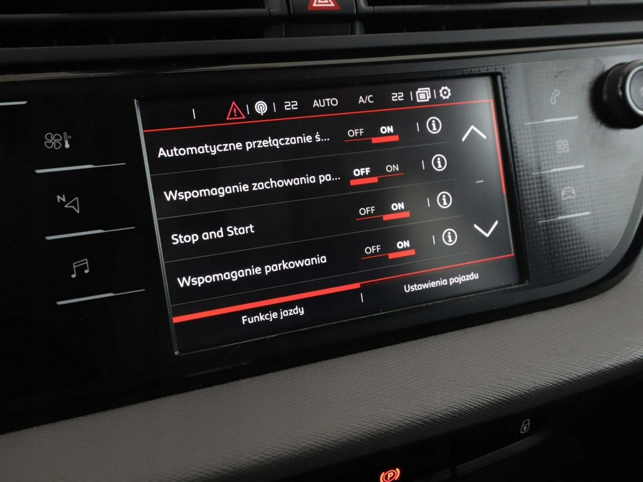 ABS, ASR (kontrola trakcji), Czujniki parkowania tylne, Immobilizer, Asystent parkowania, Asystent pasa ruchu, Czujnik martwego pola, Czujniki parkowania przednie, Poduszka powietrzna kierowcy, Poduszka powietrzna pasażera, Poduszki boczne przednie, ESP (stabilizacja toru jazdy), Isofix, Kamera cofania, Elektryczne szyby przednie, Elektryczne szyby tylne, Elektrycznie ustawiane lusterka, Przyciemniane szyby, Wielofunkcyjna kierownica, Wspomaganie kierownicy, Tapicerka tekstylna, Bluetooth, Radio fabryczne, Nawigacja GPS, Centralny zamek, Komputer pokładowy, Tempomat, System Start-Stop, Hak, Łopatki zmiany biegów