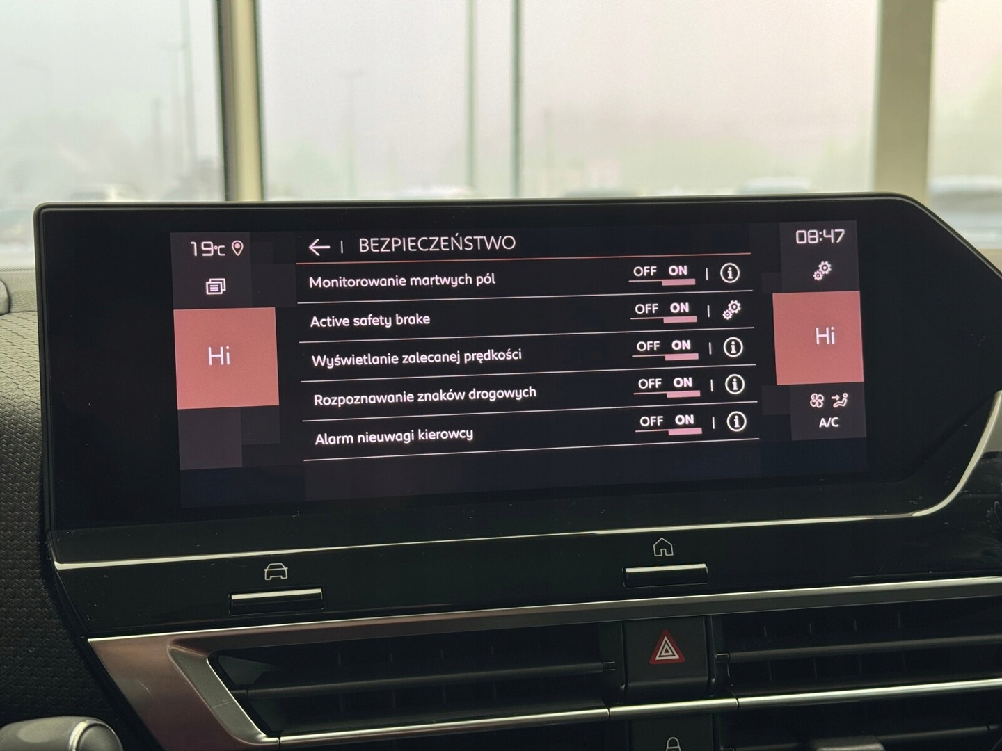 HUD (wyświetlacz przezierny), Czujnik deszczu, Czujnik martwego pola, Czujnik zmierzchu, Kamera cofania, Czujniki parkowania przednie, Czujniki parkowania tylne, ABS, Poduszki boczne przednie, ESP (stabilizacja toru jazdy), Isofix, Poduszka powietrzna kierowcy, Poduszka powietrzna pasażera, Elektryczne szyby przednie, Elektryczne szyby tylne, Przyciemniane szyby, Elektrycznie ustawiane lusterka, Wspomaganie kierownicy, Bluetooth, Gniazdo USB, Radio niefabryczne, Nawigacja GPS, Ogranicznik prędkości, System Start-Stop, Tempomat, Alufelgi