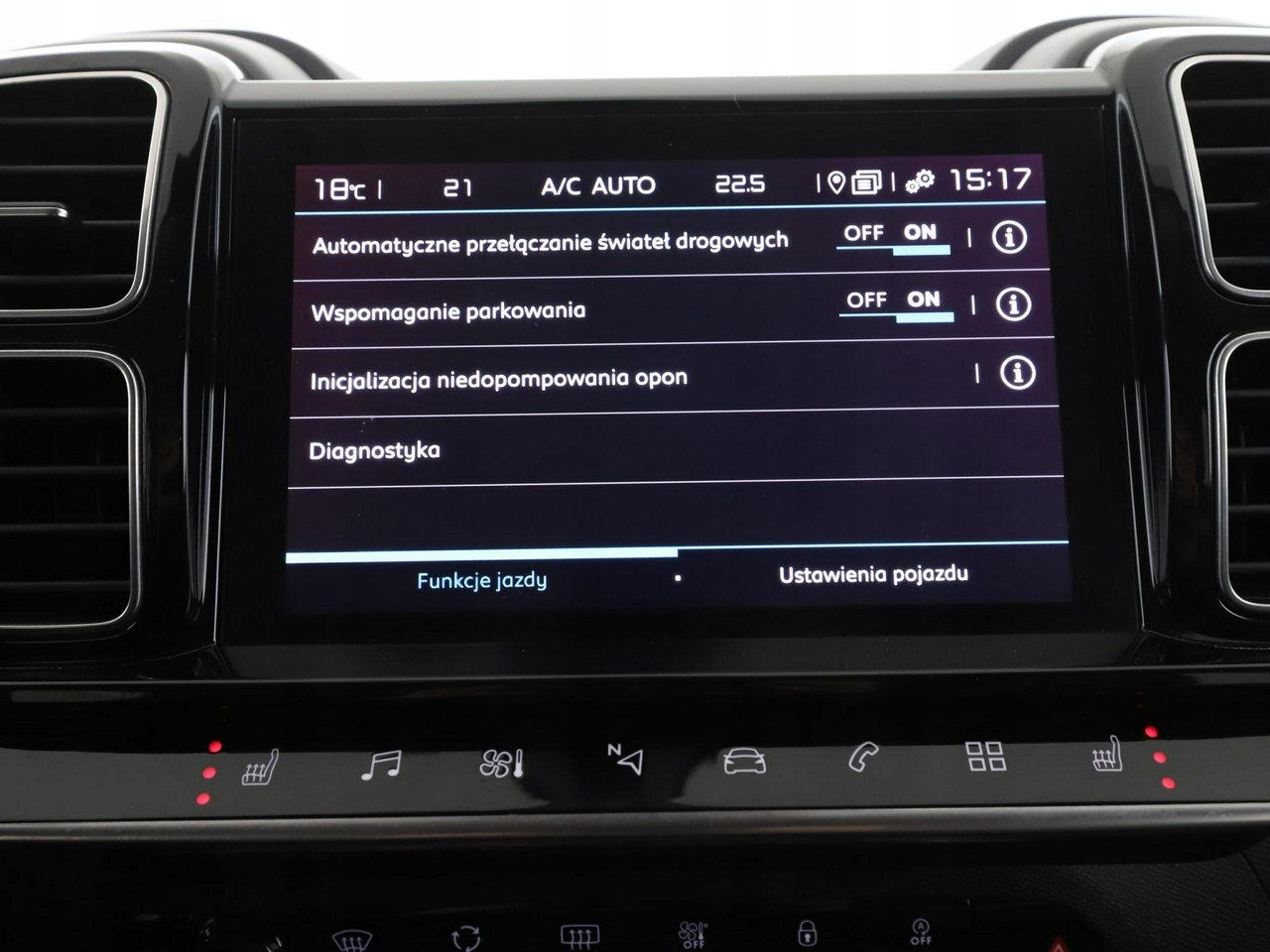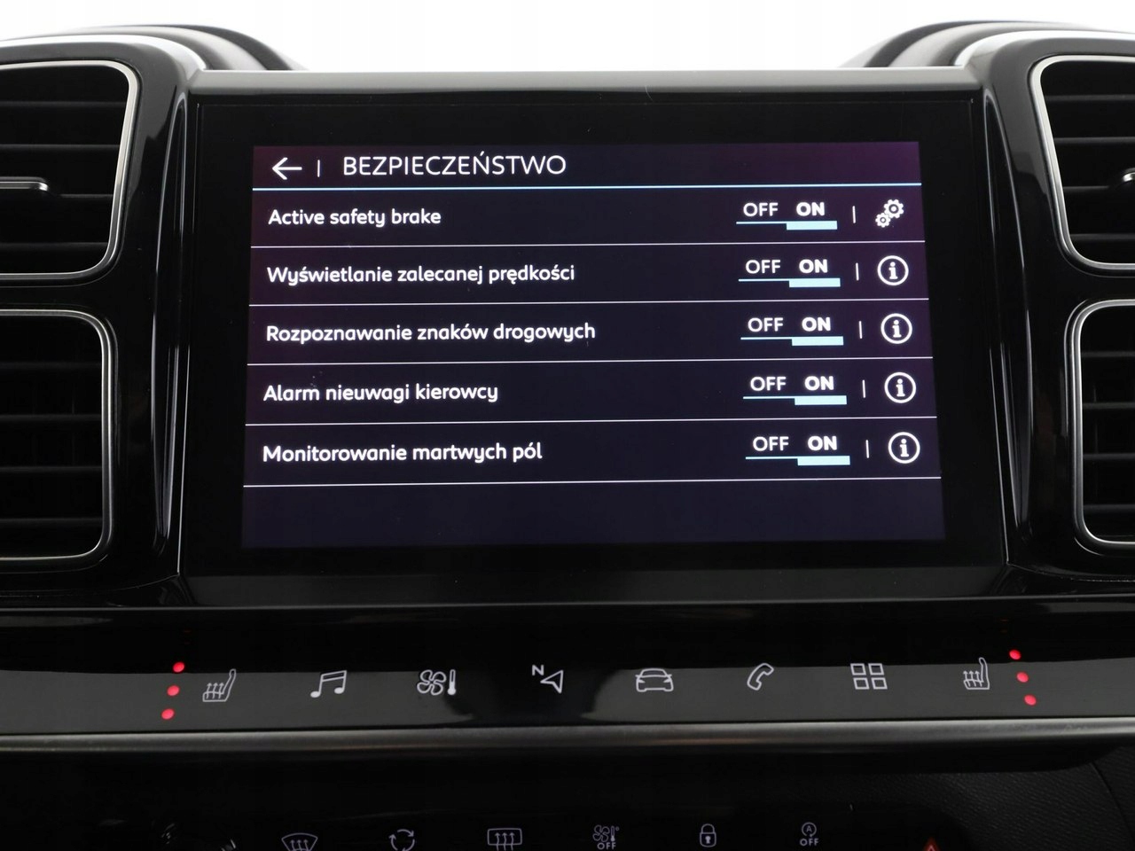 ABS, ASR (kontrola trakcji), Czujnik deszczu, Czujniki parkowania tylne, Immobilizer, Asystent pasa ruchu, Czujnik martwego pola, Czujniki parkowania przednie, Poduszka powietrzna kierowcy, Poduszka powietrzna pasażera, Poduszki boczne przednie, ESP (stabilizacja toru jazdy), Isofix, Kamera cofania, Elektryczne szyby przednie, Elektryczne szyby tylne, Elektrycznie ustawiane lusterka, Podgrzewane przednie siedzenia, Przyciemniane szyby, Wielofunkcyjna kierownica, Elektrycznie ustawiane fotele, Tapicerka skórzana, Gniazdo USB, Radio fabryczne, Nawigacja GPS, Centralny zamek, Komputer pokładowy, Relingi dachowe, Tempomat, System Start-Stop, Hak, Łopatki zmiany biegów, Tempomat aktywny