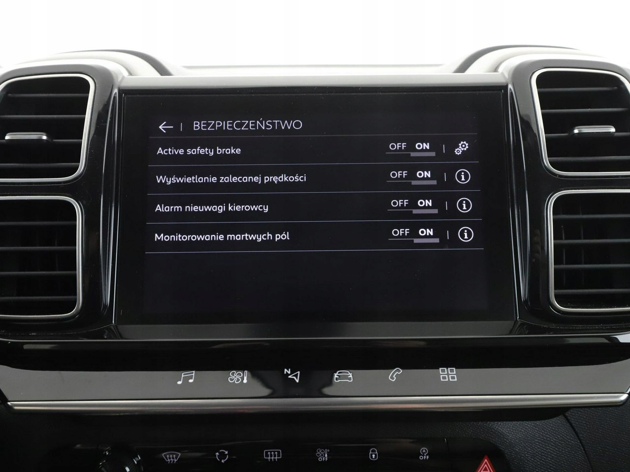 ABS, ASR (kontrola trakcji), Czujnik deszczu, Czujniki parkowania tylne, Immobilizer, Asystent pasa ruchu, Czujnik martwego pola, Czujniki parkowania przednie, Poduszka powietrzna kierowcy, Poduszka powietrzna pasażera, Poduszki boczne przednie, ESP (stabilizacja toru jazdy), Isofix, Kamera cofania, Elektryczne szyby przednie, Elektryczne szyby tylne, Elektrycznie ustawiane lusterka, Przyciemniane szyby, Wielofunkcyjna kierownica, Wspomaganie kierownicy, Tapicerka skórzana, Nawigacja GPS, Centralny zamek, Komputer pokładowy, Relingi dachowe, Tempomat, System Start-Stop, Hak, Łopatki zmiany biegów